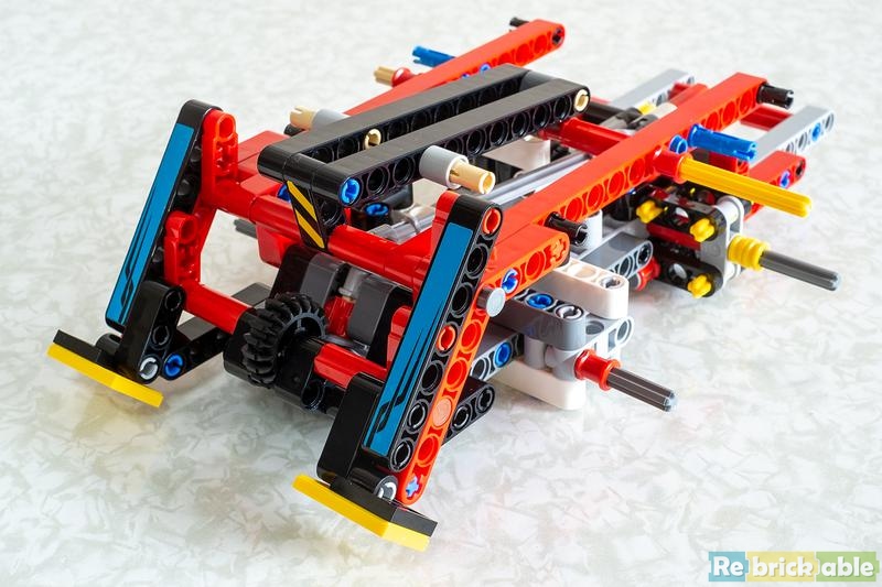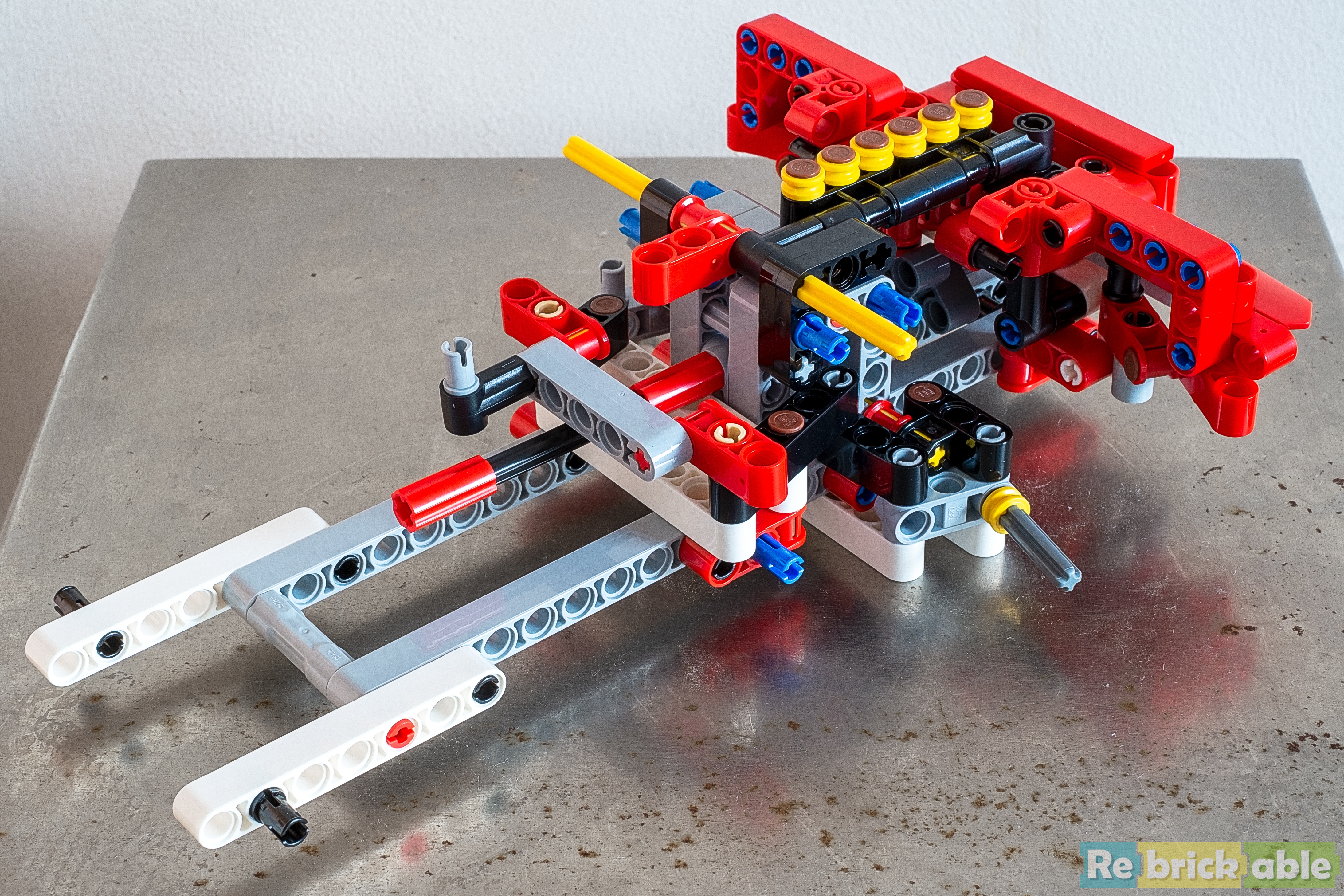 We’re hitting the home stretch here with the completion of the towing arm. The two functions are controlled via linkages, slightly lifting the arm, and opening and closing of the fork. Both functions work well enough, though the limitations of the sets’ inventory are really starting to make their presence felt. The knobs that control the functions are very close to the functions themselves; there’s simply not enough gears to route these functions to some more convenient part of the truck. The arm and fork are very sturdy though, whatever part limitations there are, they aren’t affecting the sturdiness or beauty of the set so far.