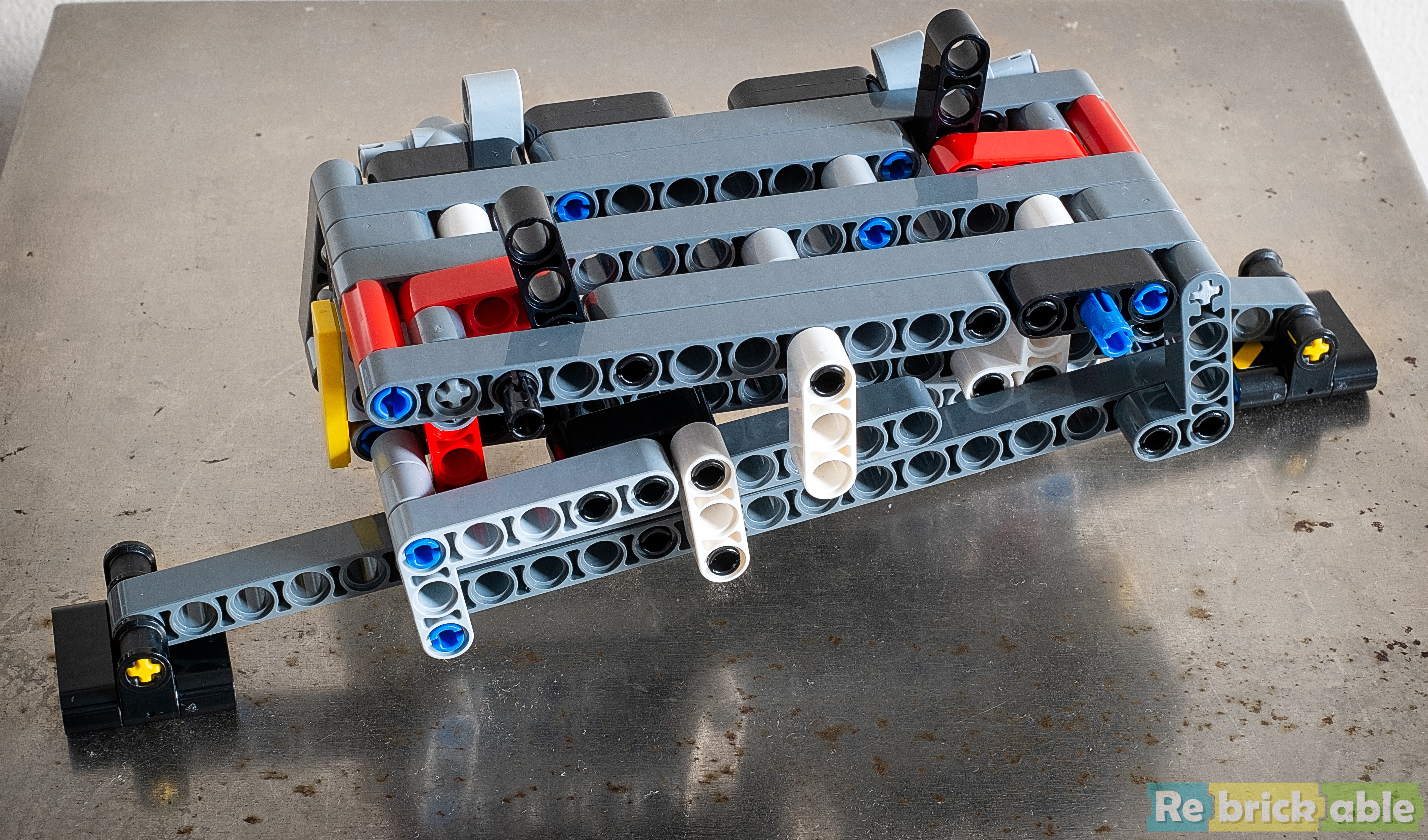 The outriggers module easily connects to the cabin. The connection is made by inserting one axle to an axle connector, it’s that easy. No lining up of 10 different friction pins required. It’s then locked in with long friction pins, and we all know how incredibly satisfying that feels, when you’ve finished a huge module, and all that’s left is putting the pins in. 😎