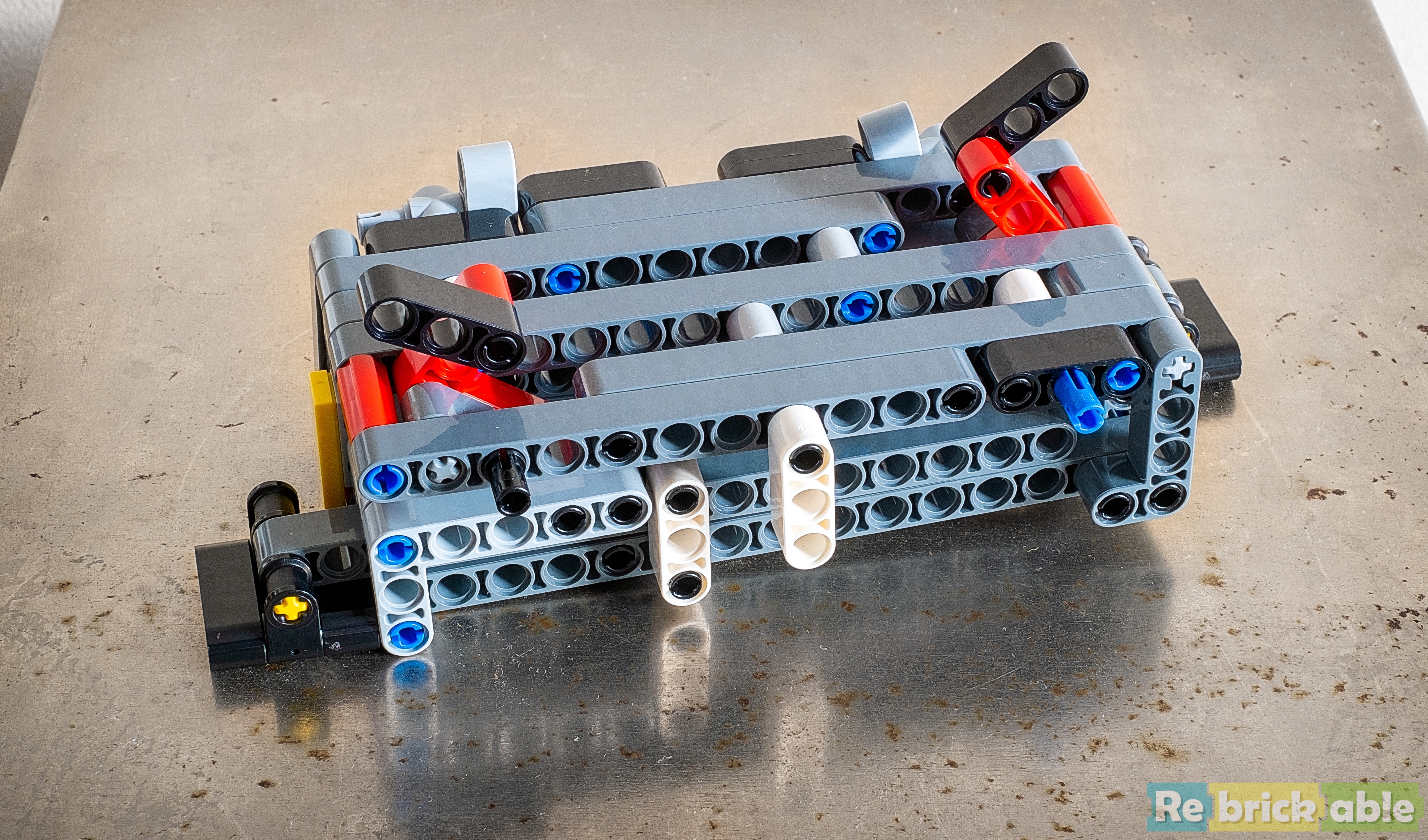 A quick little module is added underneath that will hold the front axle and the inline-six engine. A big part of this build is modular, which I like because most of the time you’re working with something that doesn’t take up too much desk space and is easy to handle. Not to mention it provides natural stopping points so you can peel yourself away from the build to take photos, and refill your tea cup of course.