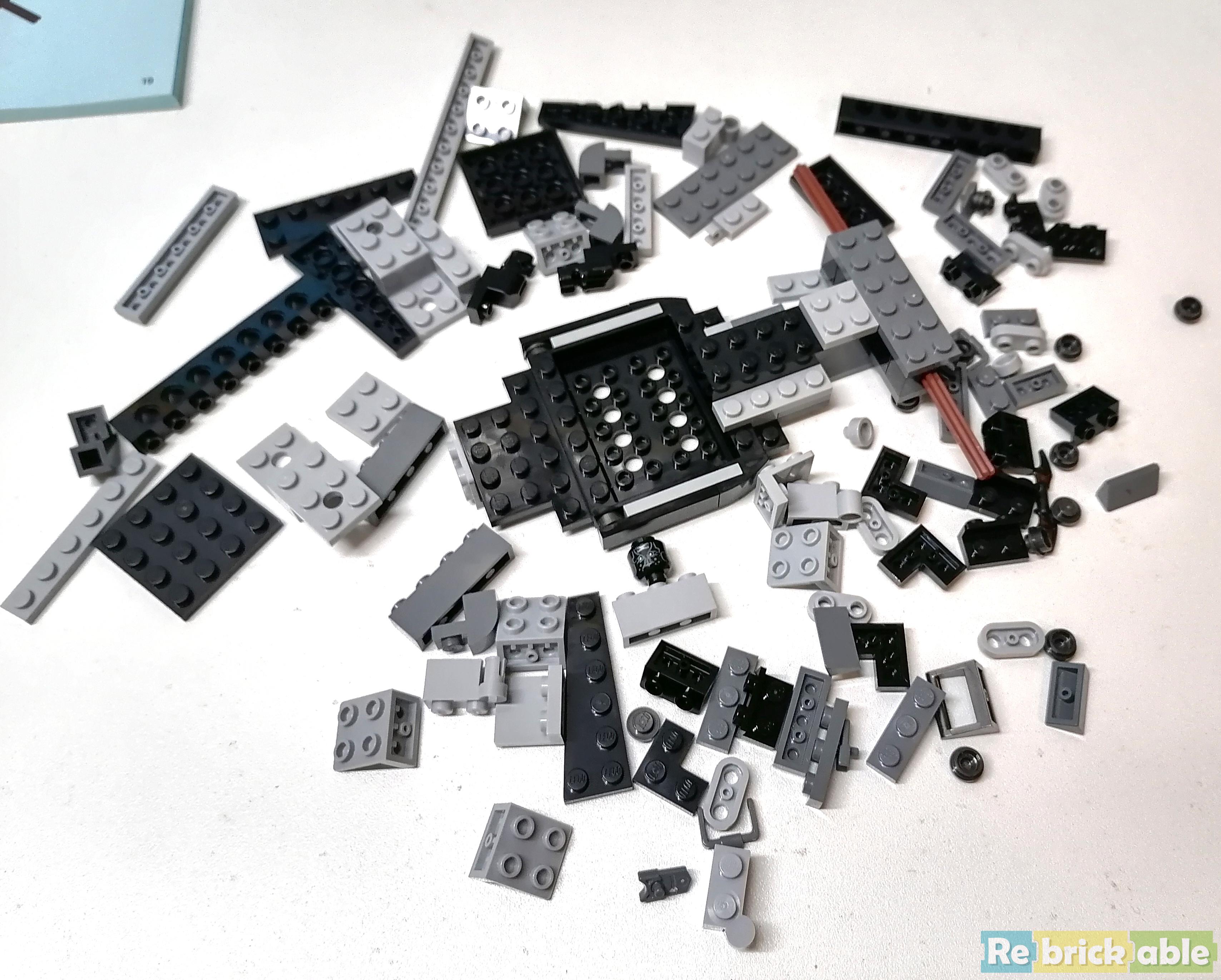 That said, for anyone who has a decent-sized collection of modern Lego parts it's super easy to replace a lot of the gray ones, especially the light gray ones, with commonly available black equivalents, and it makes the model look even better.