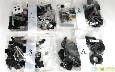 The box measures 258 x 220 x 93 mm and weighs 620 grams. Inside we find 4 numbered bags, the instructions and a loose sticker sheet. The booklet contains 143 pages and builds the model in 158 steps. The pdf can be downloaded here.