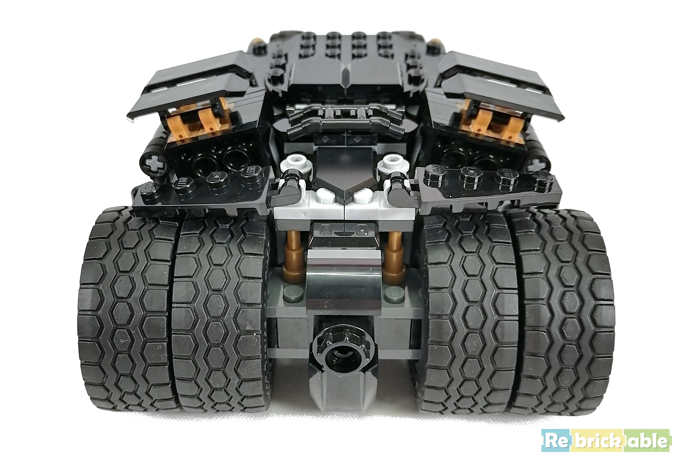 The base of the Tumbler is the recently introduced car base from the SpeedChampions theme. And to quote Batman: "I only build with black and sometimes very, very dark gray."