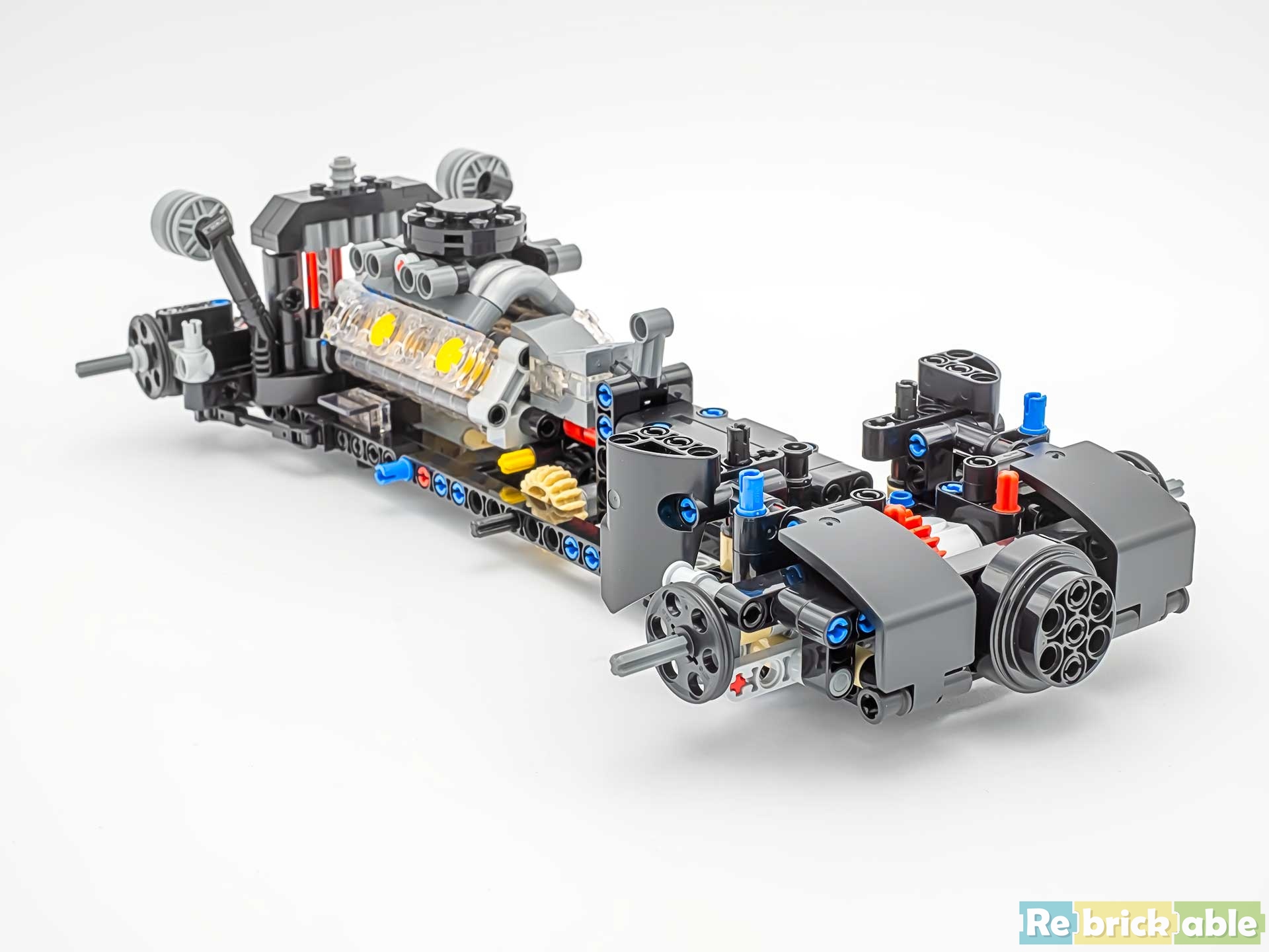 This set did not have any suspension, did you find it easier to build with as a result?Indeed, yes. It enables me to make a lower chassis to keep a low profile and have an aggressive look. I was thinking at first to create a simple rear suspension based on a torsion arm. Unfortunately it was not very interesting, with low travel and a poor rear design, so I have preferred to keep the chassis without the suspension to have a better design.