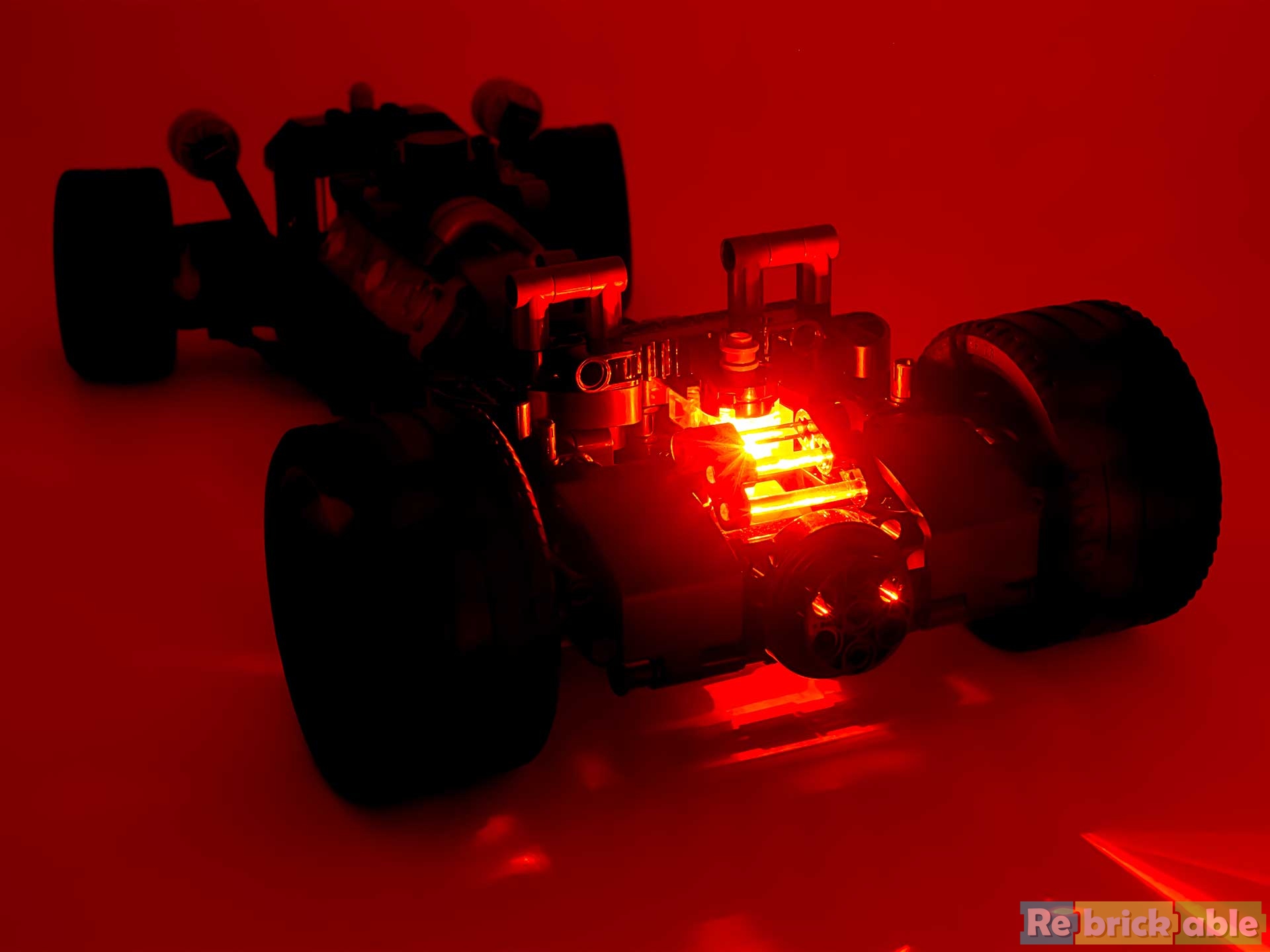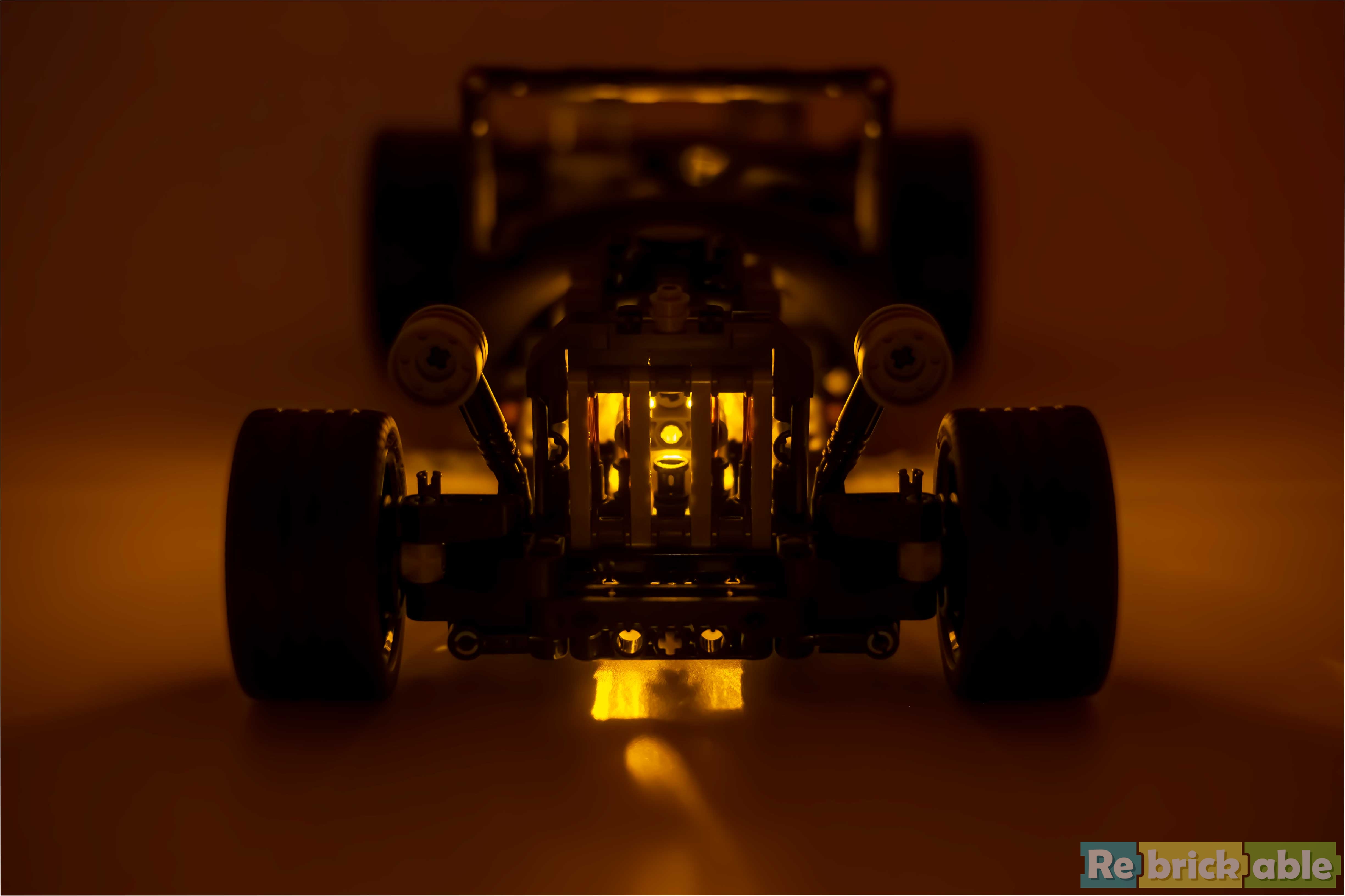 Were the light bricks a fun challenge to incorporate, or more of a nuisance to have to account for?It was actually quite fun! I have never played with them before. I have chosen the yellow one for the engine to have strong illumination and the red one for the rear which is less visible The engine design was easy with the engine block, and I''m very satisfied with the double position switch I have created, which uses the light brick button to maintain the position. Pretty simple but works good!