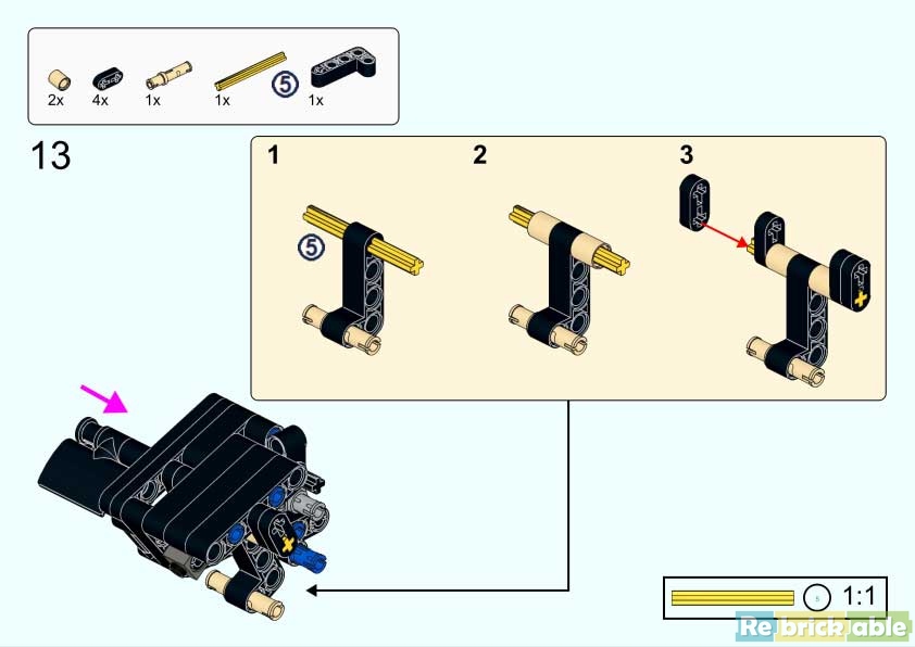 These instructions are so well made, they set the standard of excellence. If you make instructions for models, I recommend taking a look at this for inspiration. I love the light cool background color that sets off the beautiful renderings of the build. Every step is nice and large and easy to follow. There are even 1:1 indicators for axles and beams! It really has a big positive impact on the build experience, I love it a lot.