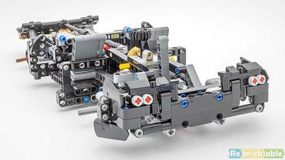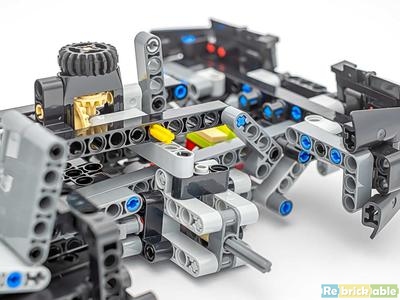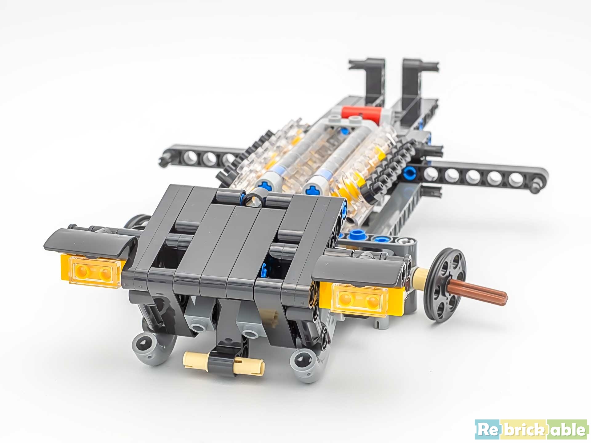 The construction of the rear axle brought great pleasure to me. Lots of small parts wrap around the 5x11 frame to finish off the drivetrain. There is a red light brick at the end of it with no hint of its functionality so far. I’ll bet a lot of money it’ll simulate the brake lights.