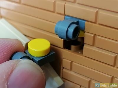 I've never seen this technique used: the transparent brick is placed inside the window using a plate with bar. On the viewing side, it looks like a light in a niche.