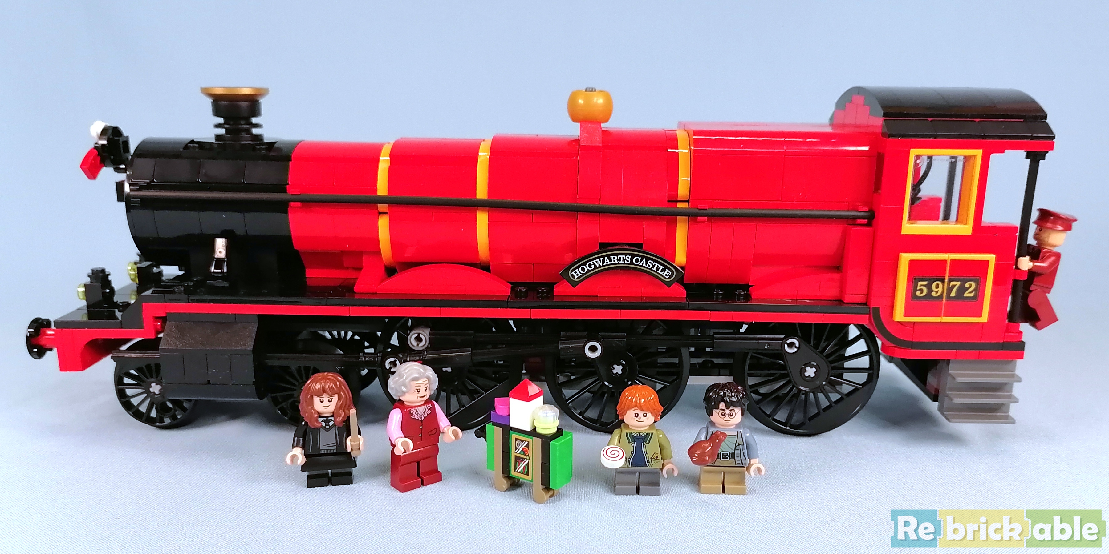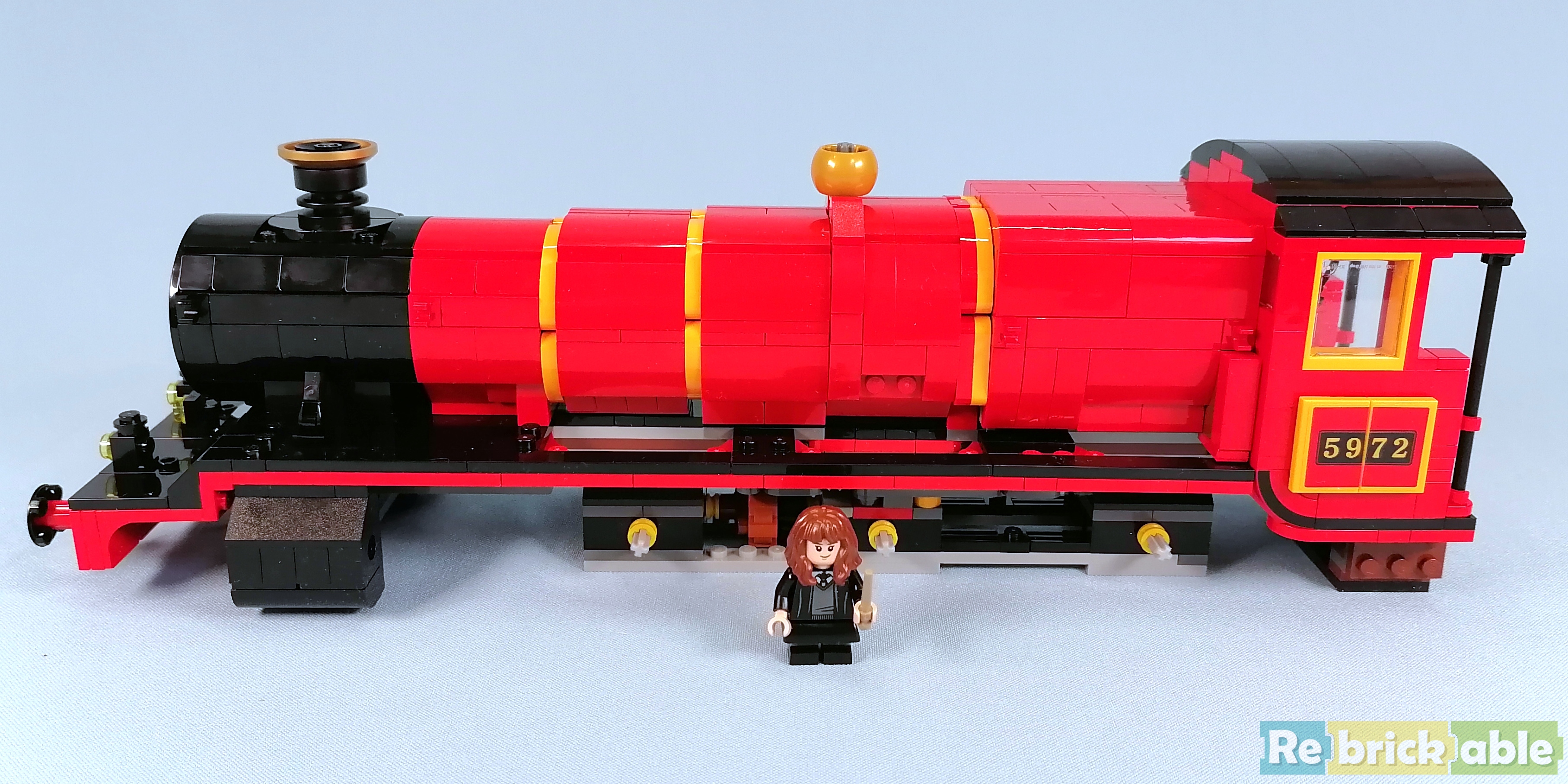 Looking at the set art, it seems like a lot of parts for just a train, but looks can be deceiving. Designer Marcos Bessa wanted to make sure all details from the movies would fit inside the train, so instead of the standard 6 studs, this train is 10 studs wide, making it much more true to minifig scale. For the locomotive, new 50 mm wide train wheels are created. It all sounds interesting, but the question is: does all of this make it a great set? All aboard, we're taking off for a ride on the Hogwarts Express!