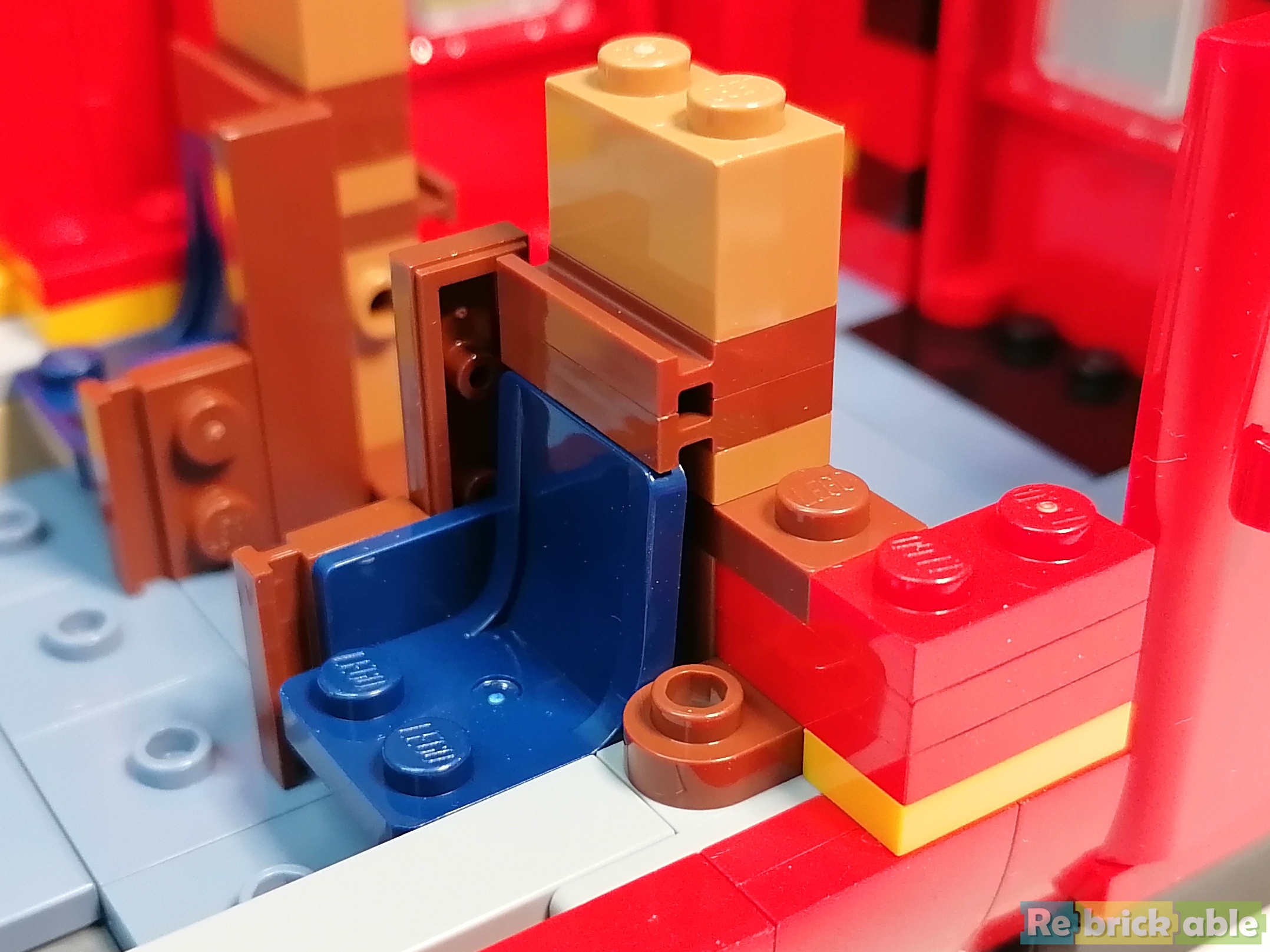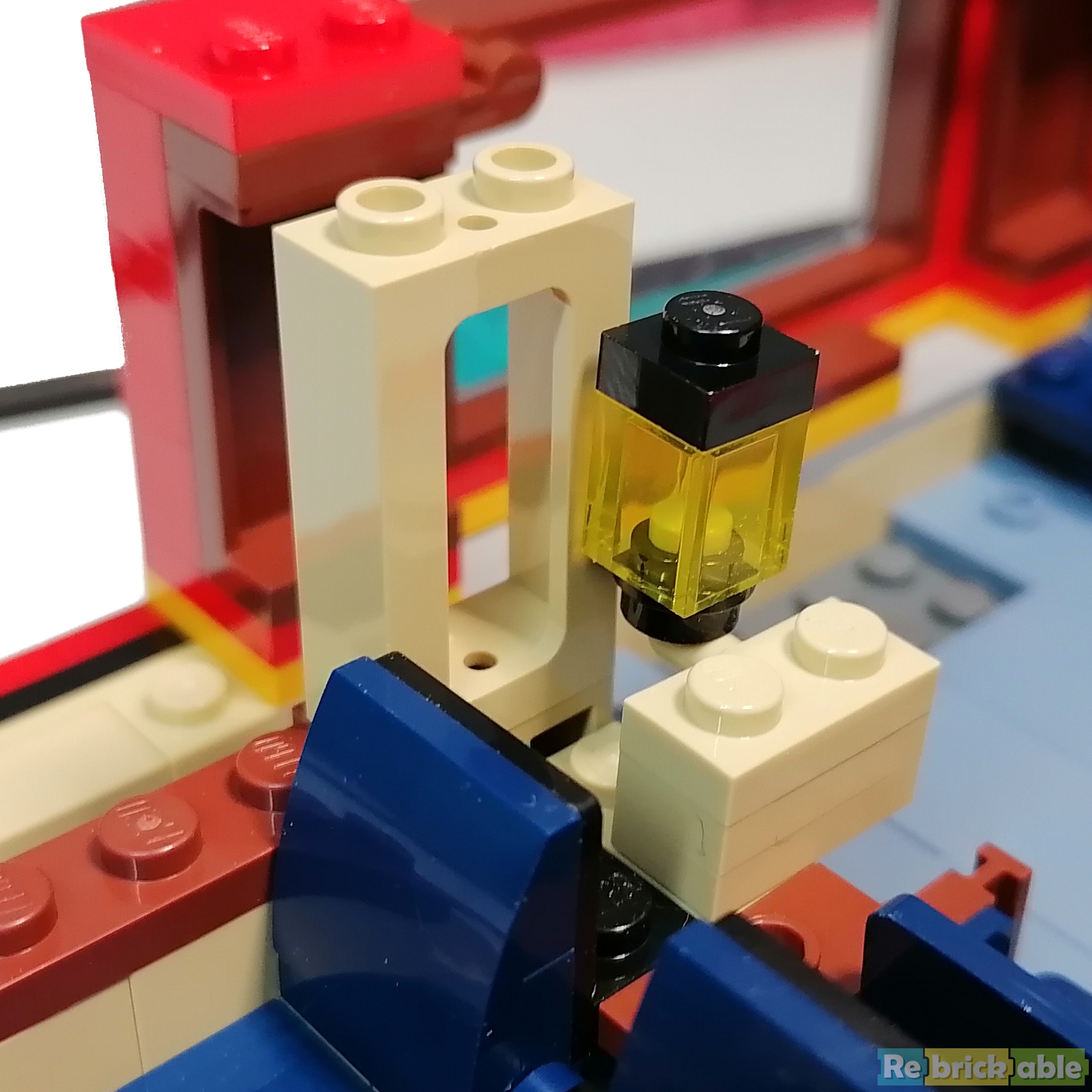 I love how the round water tank is built. The use of Technic frames is very clever to get a line of Bright Light Orange in the tank.