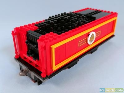 Book 2 closes with the coal tender. Like with the water tank on the locomotive, the tender has a Bright Light Orange line running over the side. The designer had to use some great SNOT techniques to make it work. I love these types of builds!