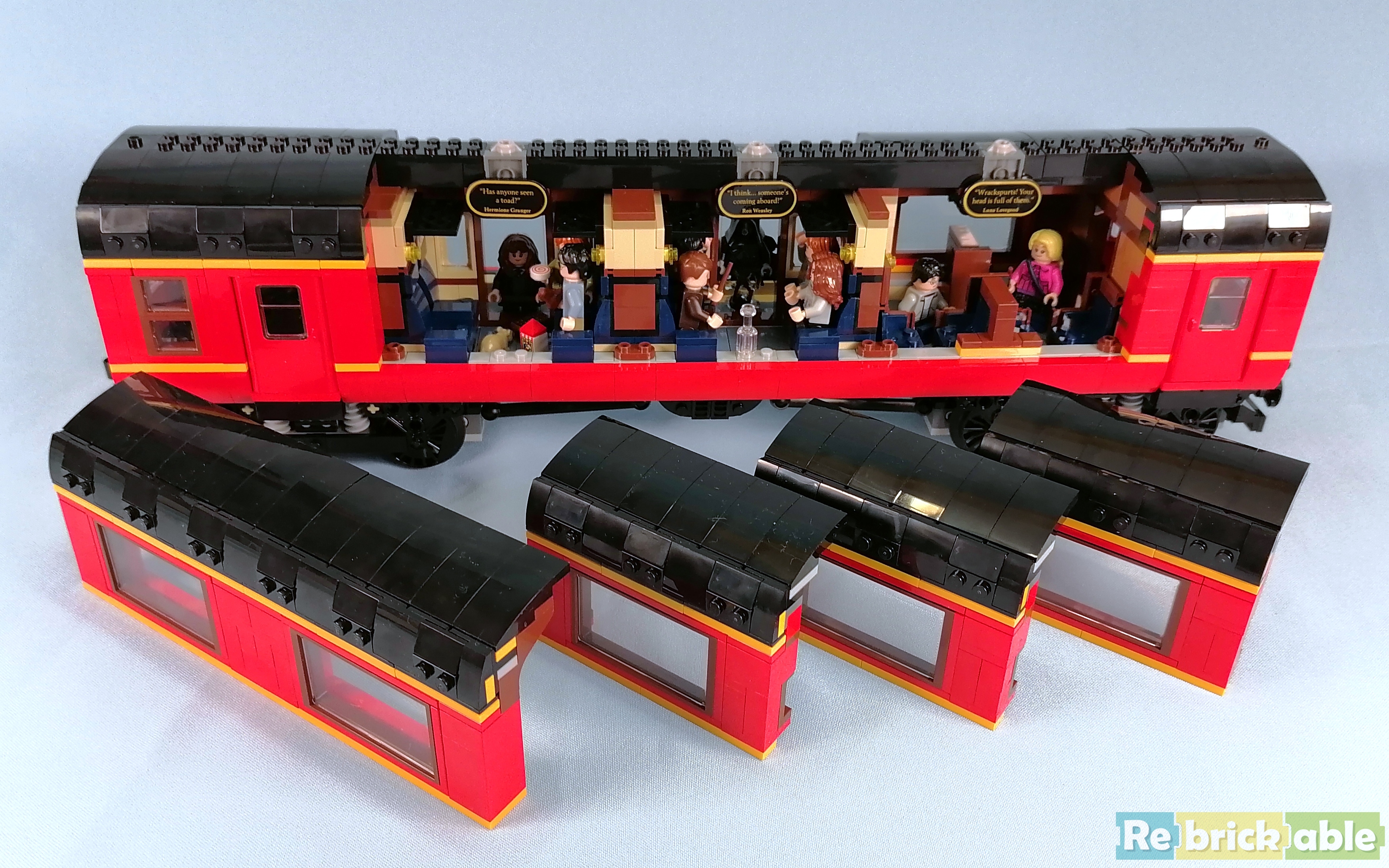 The set comes with a whopping 20 figures. Some of these are multiples of the same characte: we get 2 Hermiones, 2 Rons and 4 Harry Potters. This is because in the passenger carriage, several scenes are depicted from 3 of the movies.