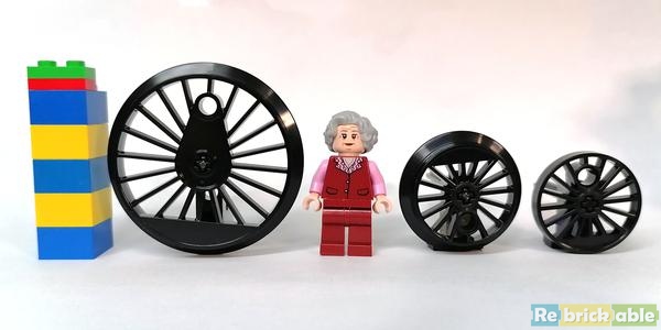 To give you an idea of the size of the new train wheels, I made this photo with the new mold next to a standard minifig and the 'old' wheels 85557 and 85558. They are huge! I wonder if we're gonna see new MOCs in the future with larger-scale trains using them.