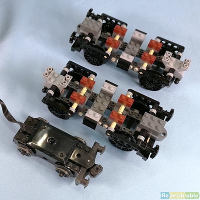 The carriage gets some wheels. I've put a standard LEGO train motor next to the wheels to get an idea of the size.