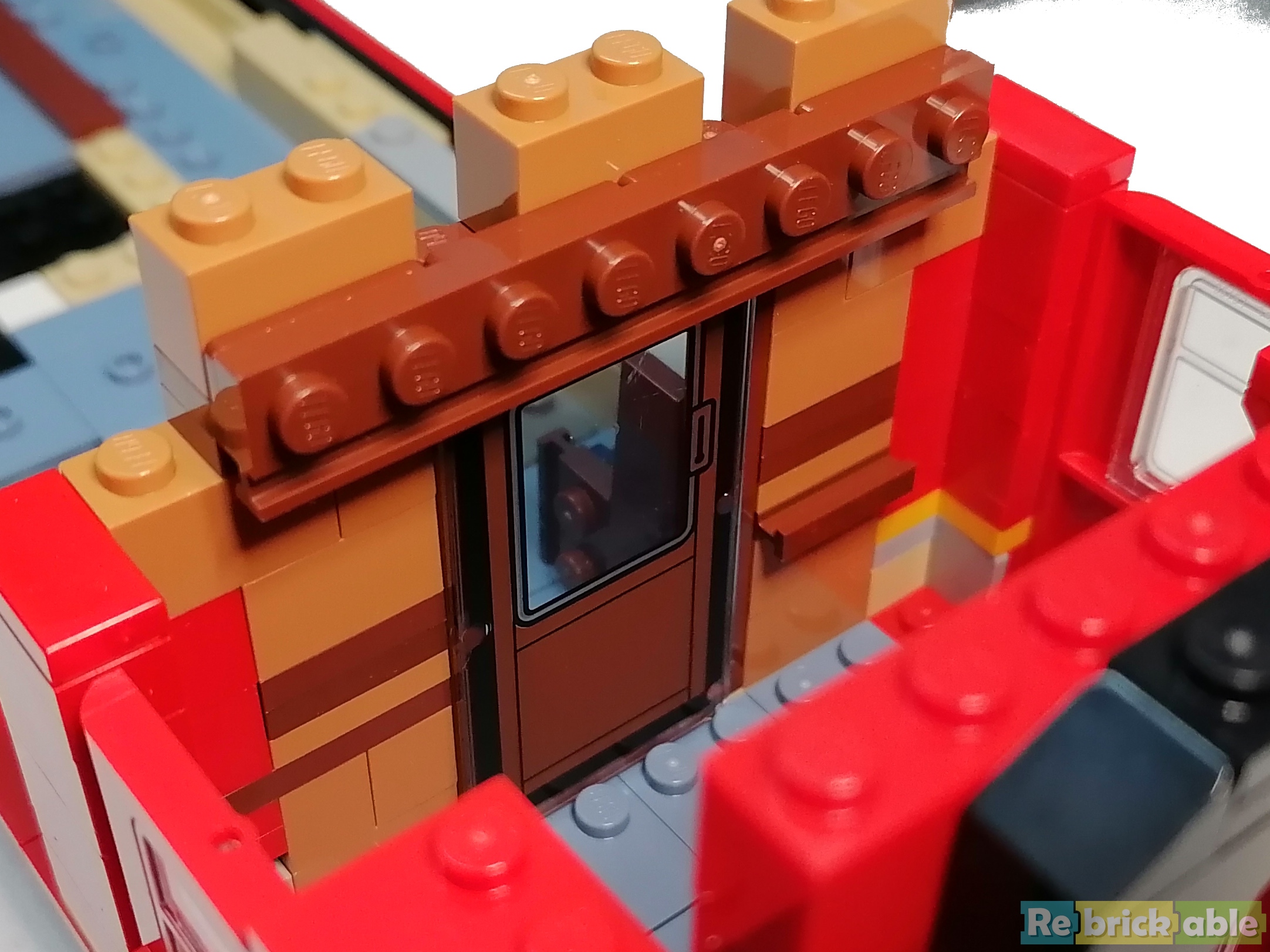 I love how the seats directly line up with the wall behind. It's a small detail, but makes the build look so much better than just placing a seat. The large window is fortified using the plates with bar.