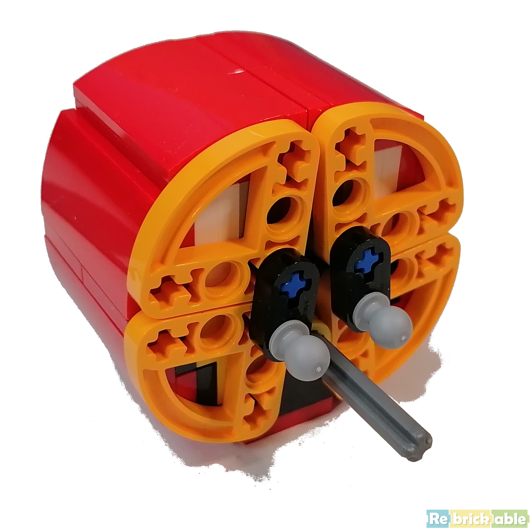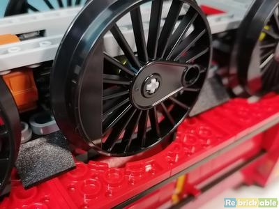 And the reason for the Technic assembly in the bottom: You can turn the wheels by rotating one of the chimneys. Or rather: the axle inside the chimney. The chimney itself slips, so you'll need to add something to the axle to get grip.