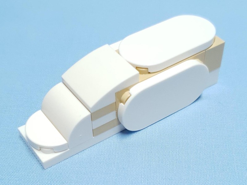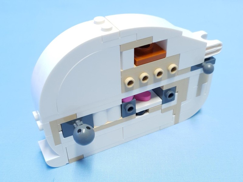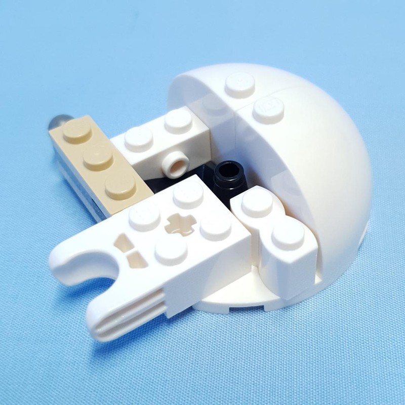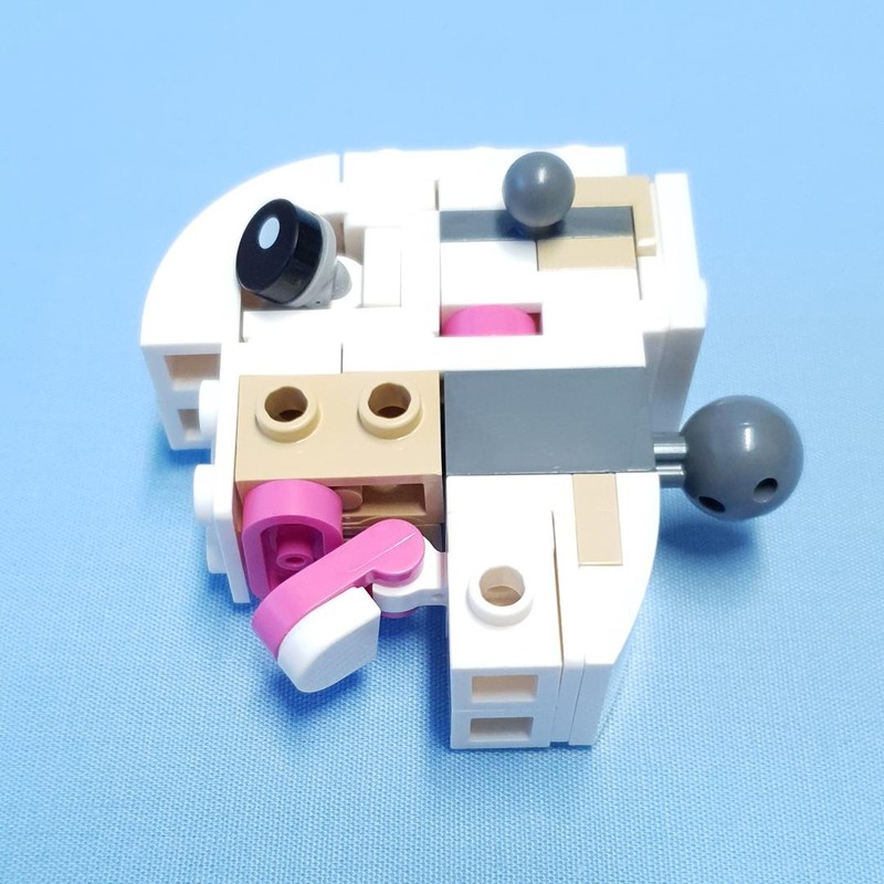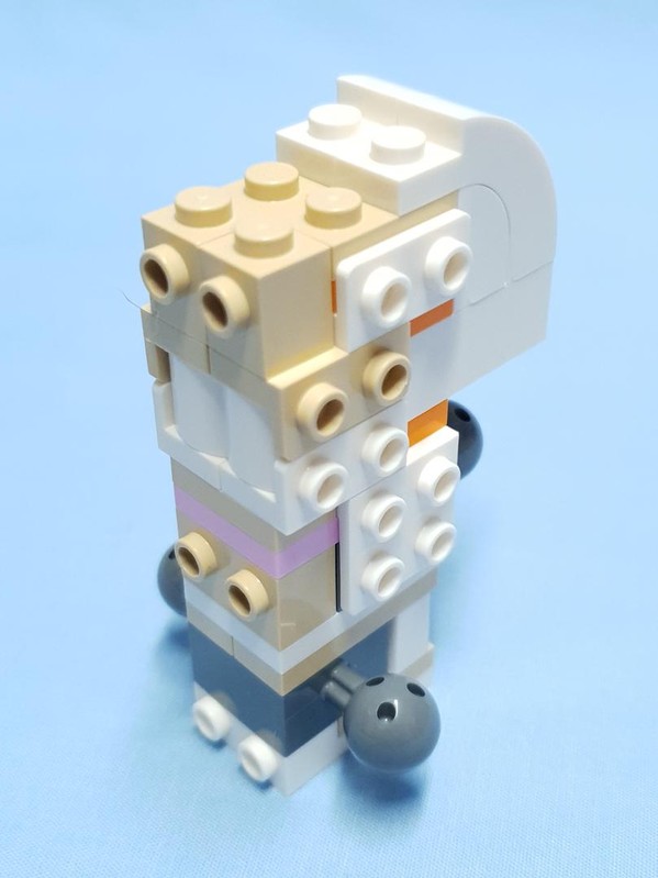 I quite like the head, the beak shape is spot on, the sulfer crest pops, and the floppy turntable is less of a problem because gravity is not fighting you in this orientation. The neck gap is a bit awkward, but can be improved by adding the spare jumper plate under the half round tile, as well as any spare tiles on the two studs behind the turntable. With such an easy fix, I wonder why it was left this way? The crest can be turned around if you want a more relaxed cockatoo.