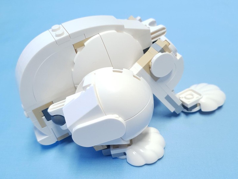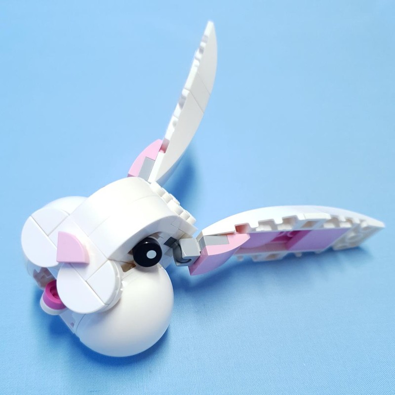 The wings were a bit disapointing, I haven't had much experience with the smaller turntable part 27448, so was surprised when the wings were floppy, gravity always taking them to the lowest possible position. I might try swapping them out with part 61485 to give it a bit more poseability, but you wouldn't be able to fit that part in the rabbit's cheeks.