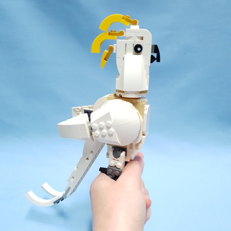 One thing I don't understand is all the tan pieces. All three builds are of a white animal, yet lots of tan pieces have been used for internals and often show through around joints or other areas of the model. I just don't know what added value the tan brings over replacing them with white parts. It might be to make instructions easier to follow, monotonous white parts might confuse younger builders? It could be to make the builds look more textured? The turntable part too, could have easily been made white to improve the look of the cockatoo neck (the only build that uses it). The only positive I can think of is it might make for some interesting alts, but I don't think alts (other than b models) are given much thought from LEGO during the design process.
