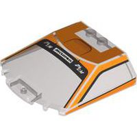 On to the F1 LM. The vertical SNOT brick and curved brick are resting on top of the studs of the plate underneath, bringing the ball-joints in the right position. The rear fender uses the first printed plate 1 x 8, and binoculars for exhausts.