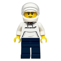 1x Race Driver - White Torso, Dark Blue Legs, White Helmet