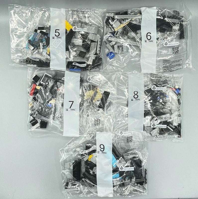 The box measured 480mm x 280mm x 120mm. Inside are 14 bags, 13 numbered 1 to 11, and 1 unnumbered bag. 2 sticker sheets, and an Instruction Manual.