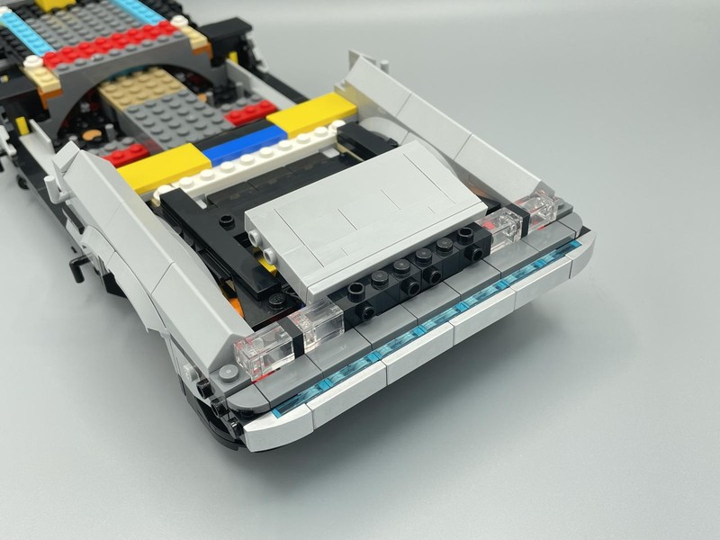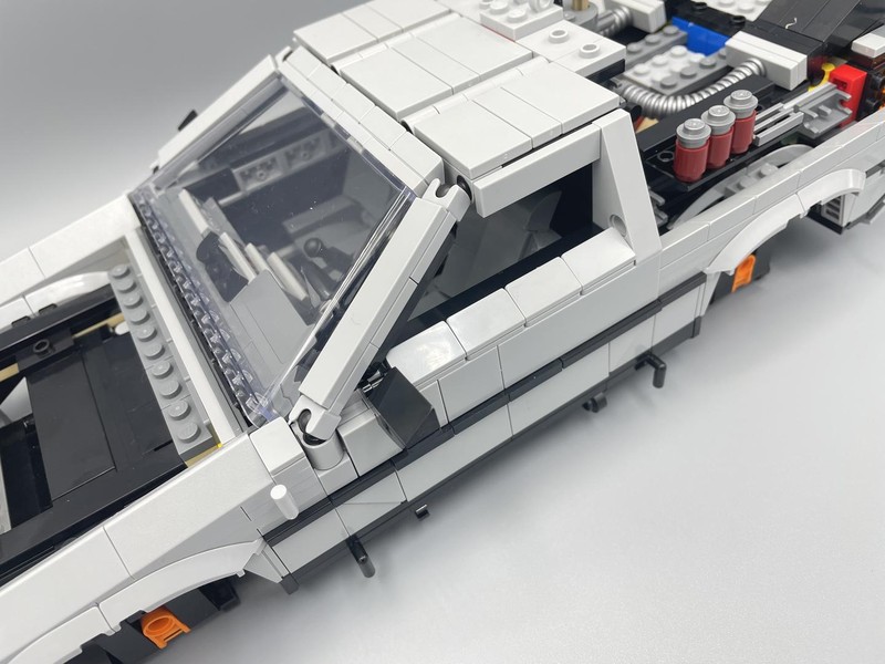 One of the most recognizable things about the DeLorean is the gull-wing (or falcon-wing) doors. I have been most excited about seeing how LEGO would create these. Turns out with some simple technic pins and incredible SNOT work. I seriously struggle to comprehend how people can figure out designing models like this. This level of geometry is not something I'm capable of and is a reason I rely upon Rebrickable designers to make things for me to build.