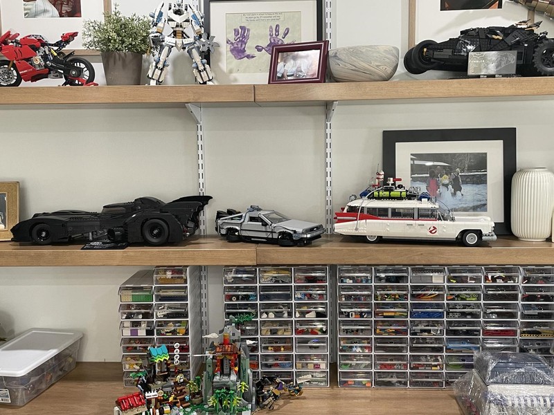 I got this set day one and I absolutely love it! Amazing build and amazing model. I display it with the Mr. Fusion on the engine and I did the simple door mod by TOPACES to make the doors stand open when I want them to. I also have the big Batmobile, and the Delorean does look rather small next to it, but I was hoping that the scale would match better with the Ectomobile (which I have, but didn't build yet). Still its cool to see them all together in your photos-- That's a great looking display you have there!