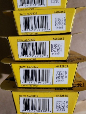 The figures can be purchased in 3 ways: The 71045-0 Blind Box, 66763-1 6 Pack Box and 6483008-1 Sealed Box with 36 boxes. The big box is said to contain 3 full sets of figures, but don''t take that for a certainty. In each box we find all the parts, the usual stand for the figure to be placed upon, and a sheet showing all possible figures and instructions for some of the more ''complicated'' figures. The pdf of the sheet can be downloaded here. As with the Marvel Series 2, I''m not sure what to think of the boxes. Using less plastic is great, but the boxes seem easy to rip open in the store, and the parts are all loose inside, making them rattle and possibly scratch a lot more. I''ve seen numerous photos of ripped open boxes, but on the other hand: plastic bags are flatter and can more easily be smuggled out. So maybe theft has been a problem for all series, but only know we see it the results of it?A major difference compared to previous series can be found in the side of the box. Here we find a QR code which is unique for the fig inside, based on the factory the box was filled in. We have confirmation from the LAN that the codes were added based on feedback from the community (so you all). They started printing the codes halfway through production, so there are boxes (like mine) with which it doesn''t work yet. It is as of yet uncertain if future series will also receive a scanbale code. For now, they are part of a pilot, and based on your response TLG will decide if they will continue. I think this is a nice middleground; the codes are hard to scan by the naked eye, so if you want to be surprised with a random figure you will still have that option. But if you want to be certain of what you''ll find inside the box without ripping it open, there is now a way to do so. There are several sources to find the link between code and fig, and there is even an app.