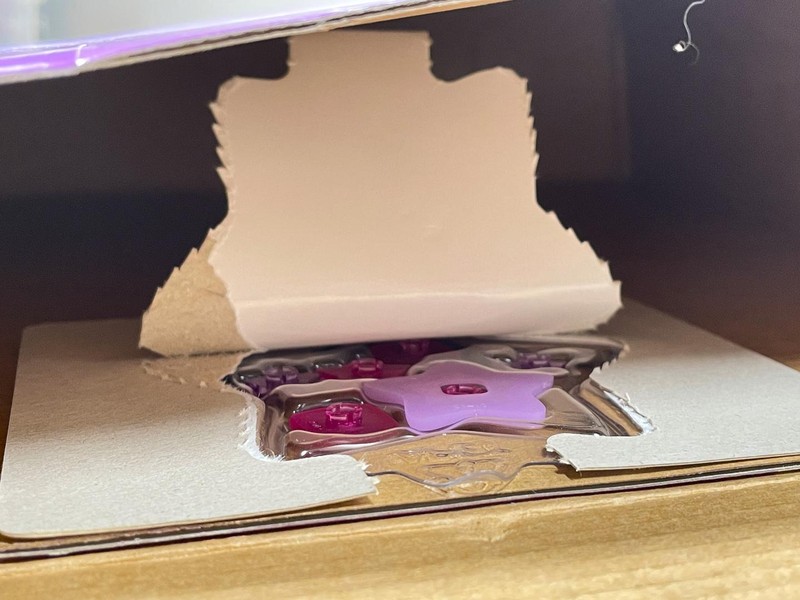 Even within the other trans-[something] purple parts in the middle (not including the much lighter star), there are 2 distinct hues to my eyes: the small rectangle looks to match the Glitter Trans-Medium Purple part, and in any case it clearly doesn't match the two small Clikits or the separator, all of which look like they're the same hue to me.