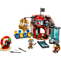 LEGO® ONE PIECE Battle at Arlong Park (75638) is an interactive toy for kids who love action and adventure. Re-creating the epic showdown between the Straw Hat Pirates and the Arlong Pirates, this high-quality LEGO ONE PIECE set makes a great anime gift for boys and girls aged 9 and up.The building set comes with minifigures of Luffy – who comes with arm-lengthening pieces – Nami, Usopp, Arlong and Chu. Kids can collapse the pagoda model during battle by tapping it firmly on top, and the shooting gallery has fun targets for kids to aim at with stud-shooters. Villainous Arlong can be placed on a throne inside the shark attack building. Chu can get a drink at the shack, and the forest contains an iconic ketchup bottle. This playset also contains stud-shooters and accessories, including 3 ''Wanted'' posters. For added digital fun, builders can zoom in, rotate models in 3D and track their progress using the intuitive LEGO Builder app. Set contains 926 pieces. From LEGO.com