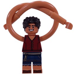 Scattered around the planet you can find Devil Fruit, a fruit that grants unique powers when eaten. Luffy accidentally ate a Gomu Gomu no Mi (or Gum-Gum), which grants him the power of elasticity, allowing him to stretch his body. To represent this, his minifigure has long stretched rubber arms. This torso has been used before for Elastagirl and Ms. Marvel, but for some reason not for Mr. Fantastic in 76316-1 Fantastic Four vs. Galactus Construction Figure. The arms can slide through the torso to make one side longer.