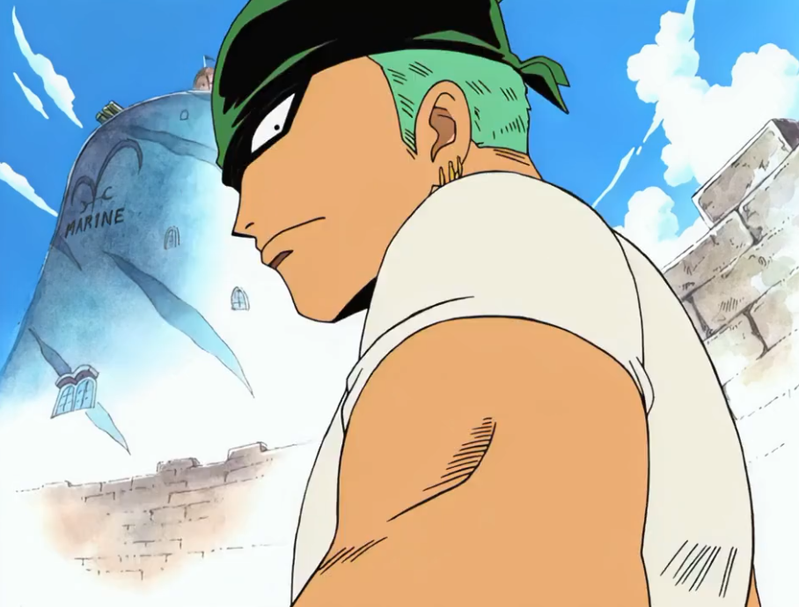 Zoro is the first one to join Luffy's crew. He is a talented swordsman who uses three sword style, carrying one sword in each hand and onother in his mouth. He previously hunted pirates, and built up quite a reputation doing so, but got in trouble with the marines before being rescued by Luffy. His dream is to become the world's best swordsman.