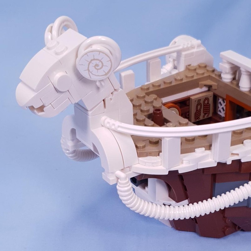This bracket technique feels illegal, it doesn't quite sit flat, but I guess it is fine as it has been used in an official set? The ram's head on the front is a little basic, but hard to get any more detail at that scale, it fits the brief just fine. The life rings add some depth to the horns, but it isn't quite a spiral and relies on the sticker for that detail.