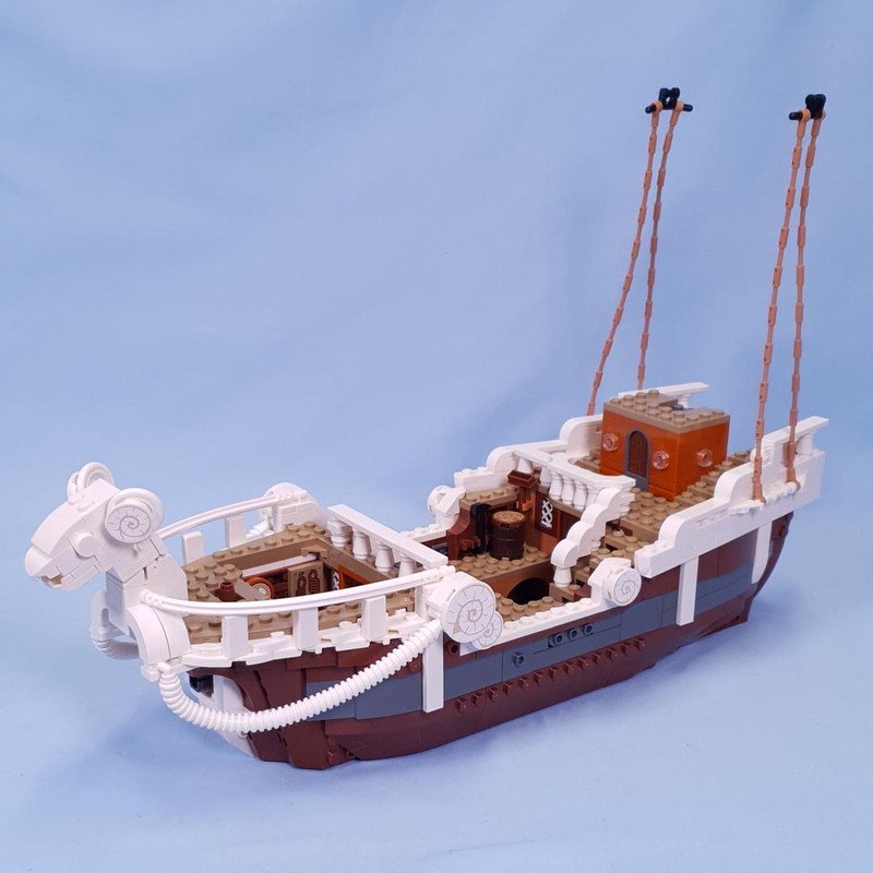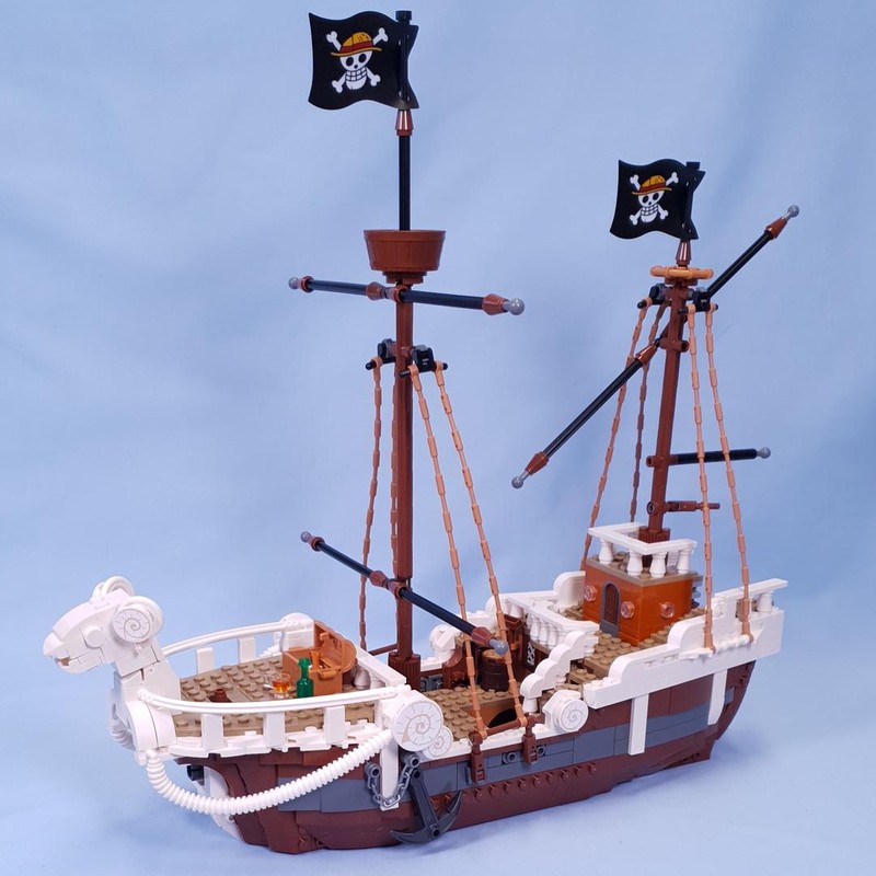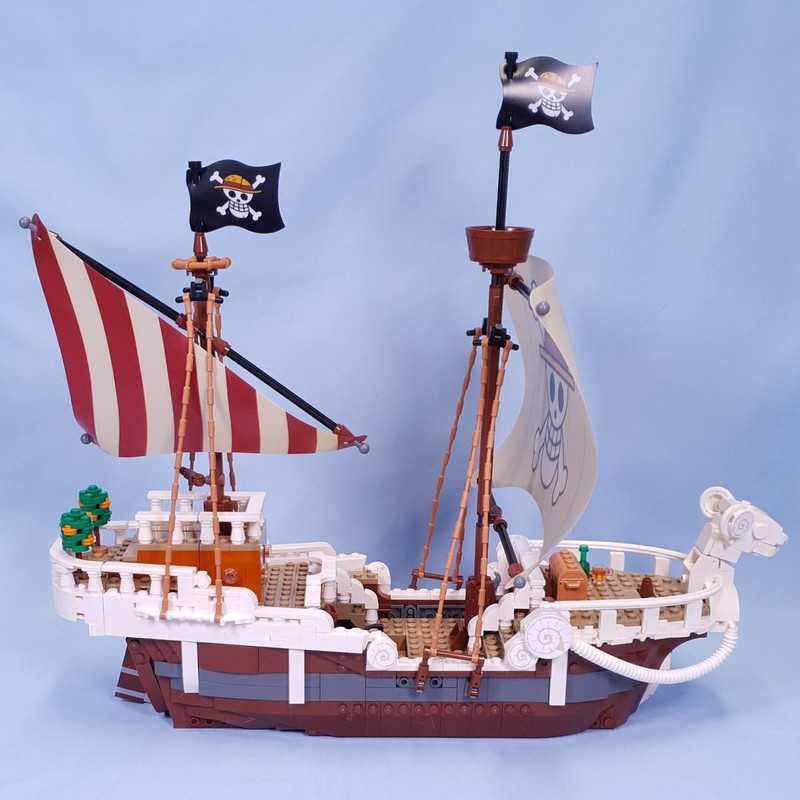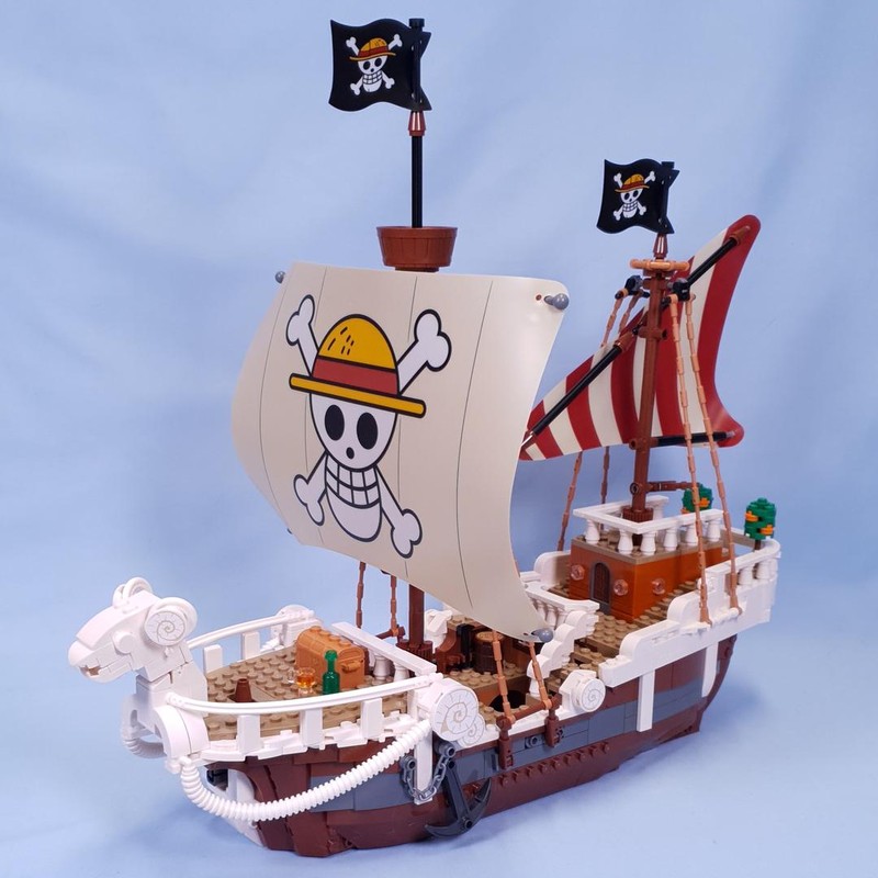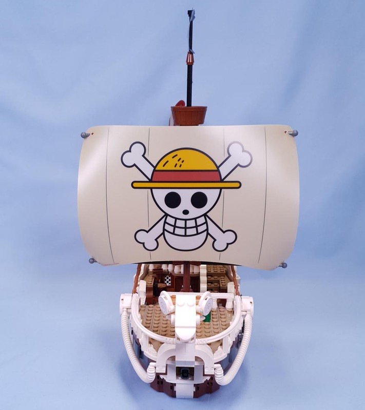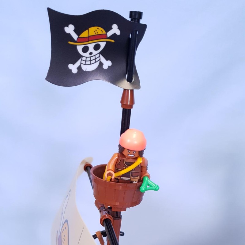 The iconic ship has several interior spaces: a crew’s cabin, kitchen, storage, and an accessory workshop. The model comes with 5 LEGO ONE PIECE minifigures. Luffy sits on the sheep figurehead at the front of the ship, below which is a cannon; Zoro relaxes and trains on the deck; Nami controls the rudder at the rear, where her favourite tangerine trees grow on the deck; Usopp climbs the masts and keeps watch from the crow''s nest; and Sanji takes pots down the stairs to the kitchen. Includes 4 ''Wanted'' posters.