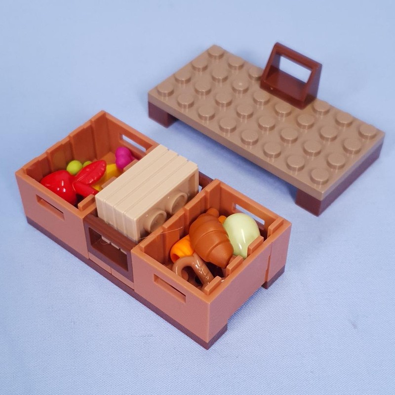 This set contains 4 collectable tiles, the ones you get are random. These along with some food are put into a storage area in the floor.