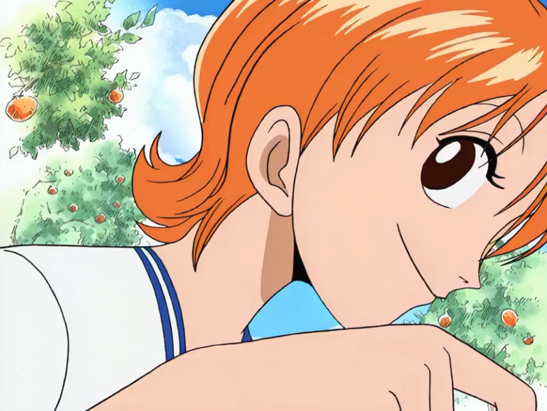Nami grew up on a tangarine farm and is a thief who at first seems to be interested only in money. She is always looking for opportunities to earn/steal berries (the currency of the one piece universe) and while she does eventually become more of a team player, her first priority is herself (and her treasure). Her fighting skills are a bit less than the boys, preferring to sneak around than have a direct confrontation, but whe will confidently wield a wooden staff when required. She is a talented navigator and cartographer with a dream to map the whole world.