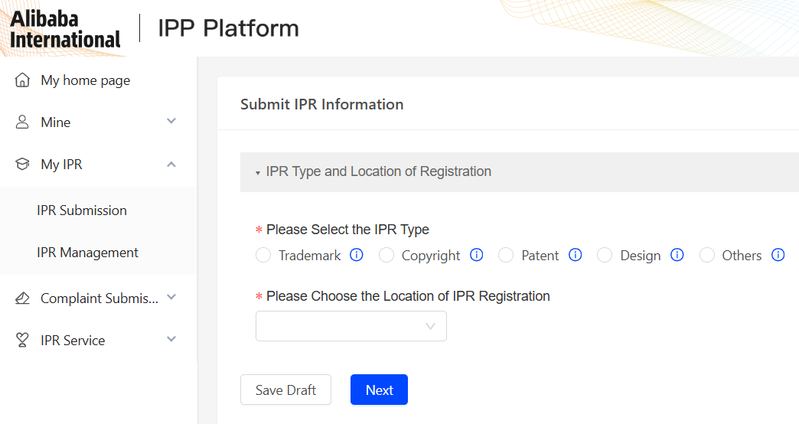 Next you need to register your intellectual property of the design(s) which you have seen listed. On the left hand side click My IPR > IPR submission.