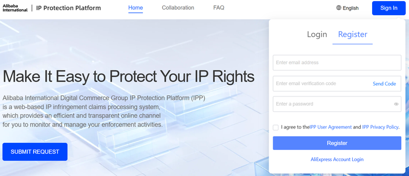 Go to the IPP platform, click the sign in button on the top right, quick register and fill in your information. You will need to agree to the user agreement and validate your email address with a code.