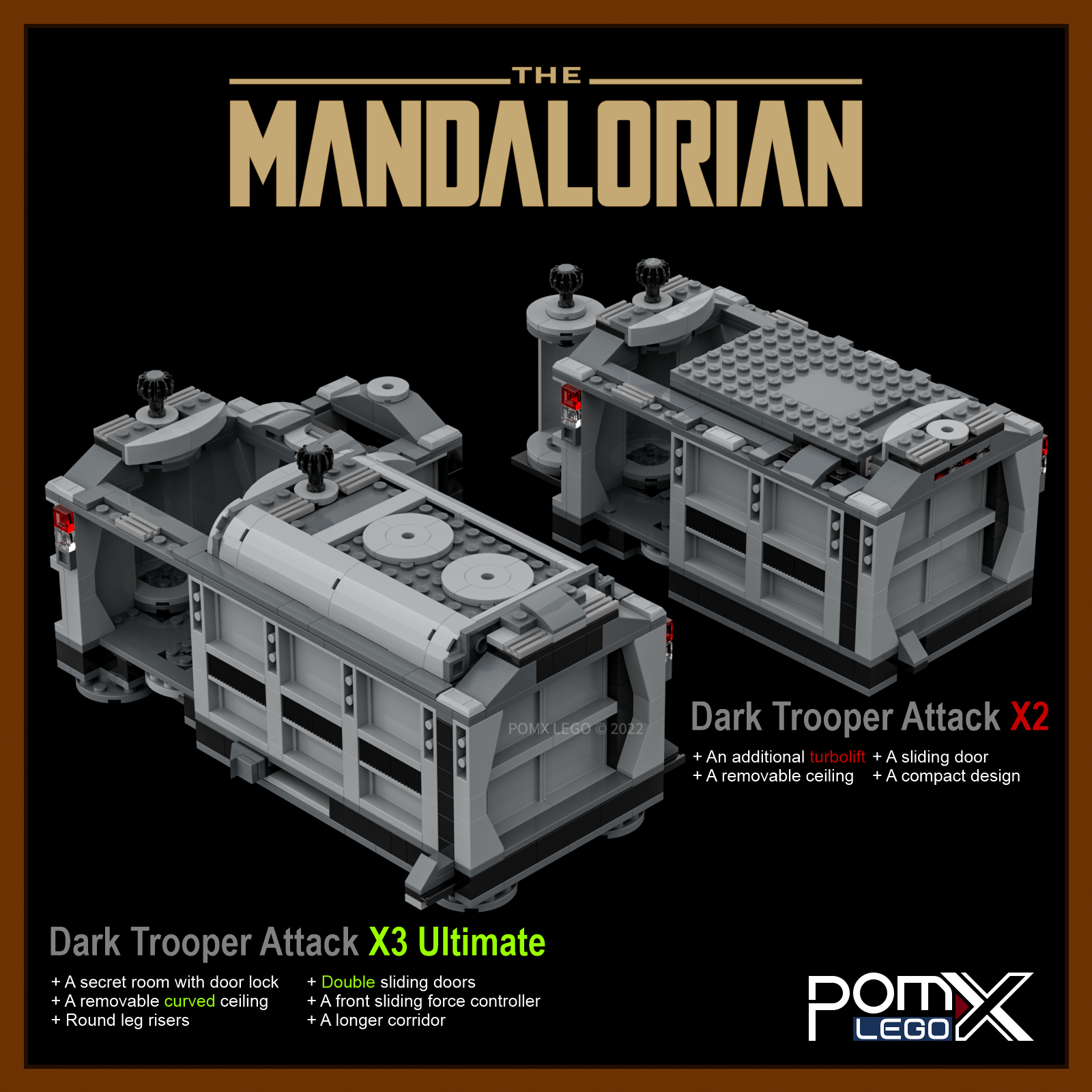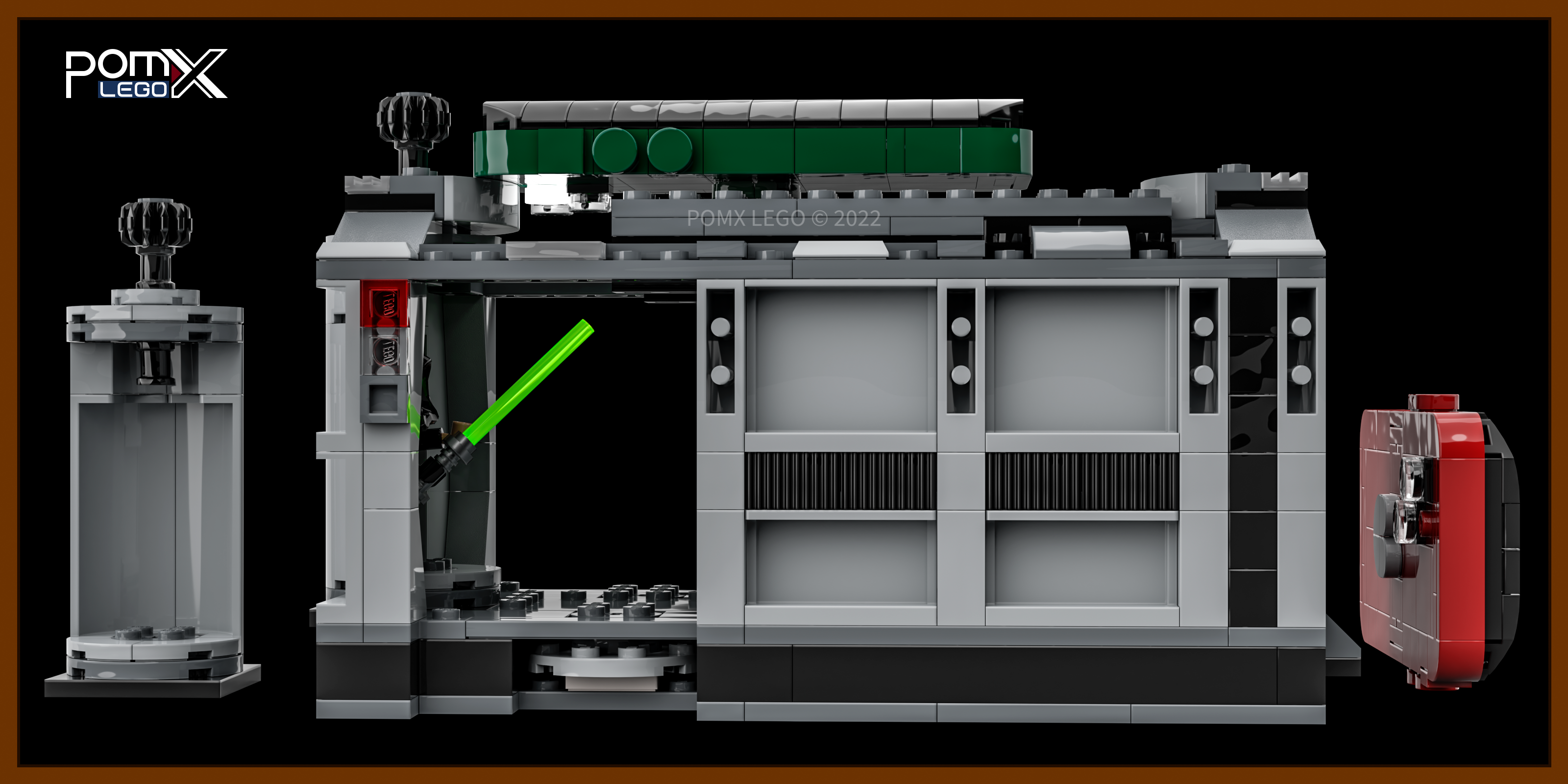 Key Features: 🛠 Keep design and functionality from the original model. 🔁 Beautiful 360 view with perfect color matching, cover all model with bricks and plates even the bottom part of the basement. 📷📱 Designed for smart phone photography, taking photos from the back (with sliding door opening) and removing top part for light setting with LED light from a smartphone. ⤴️ Slide-in removable rooftop for easy access. 🔃 Double of rotating battle platforms on both sides. ↔️ Sliding force platform is fully functional as the original. 🔨 Duplicate textured side panels. 6️⃣➕1️⃣ A plenty corridor’s space for 6+ Dark Troopers and additional Luke Skywalker. ↔️🚪 Integrated back sliding door for full access, more accurate to the Mandalorian scene. ⭕️ Smart parts usage:Incredible no leftover part (spare parts are also used) and no additional part needed ➕ Additional Turbolift with Luke for a side display.