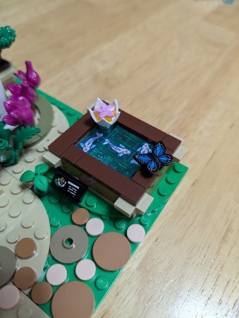 This is the first MOC I have built. Great build. I was able to add a little koi pond with the extra pieces. (the three leaf plant next to it was a piece I had from some other set)