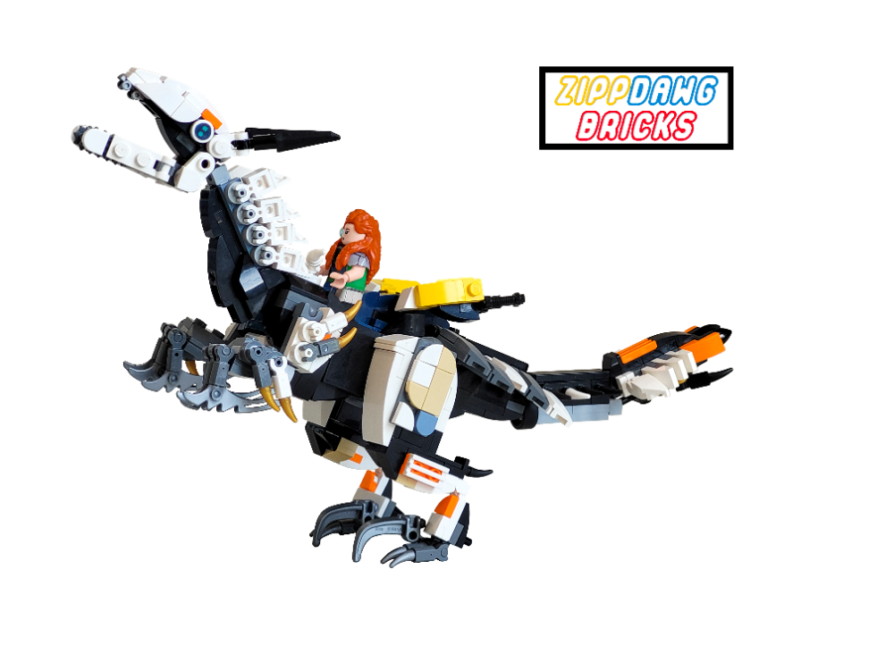 I love the detail on this, I just wish it was...smaller? It seems in-game that the clawstriders aren't much taller than Aloy. At least, she can run beside them and her head is above their "saddle". But I have no idea how you could scale it right. You used a great set of parts to get all that detail!