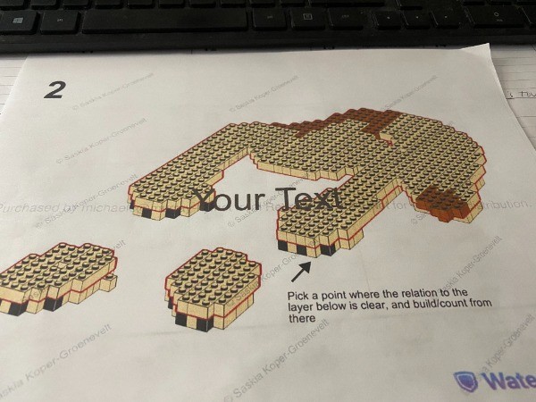 1) the instructions should not say “your text” anywhere. Could you send a photo please? If I see the issue I can fix it and post a new version of the manual for you. 2) regarding brick size - did you read the building tips? It says to count the number of studs on the outside of every layer, and then choose your own brick size. Don’t try to copy the brick from the manual. Sculptures don’t work/build like a classic LEGO set. 3) start every new layer from a point where you can clearly see the position compared to the layer below (also mentioned in the tips). 4) I would keep the base plate as long as possible, maybe even leave it. 5) if you have extra bricks to fill, then fill. You can use a grid pattern. Instructions on how to do that are on my YouTube channel mentioned in the manual as well. 6) if you use other coloured bricks to fill, make sure there are always 2 studs in the corners to avoid seeing a wrong colour. Also demonstrated in the YouTube video. 7) no need to use glue.