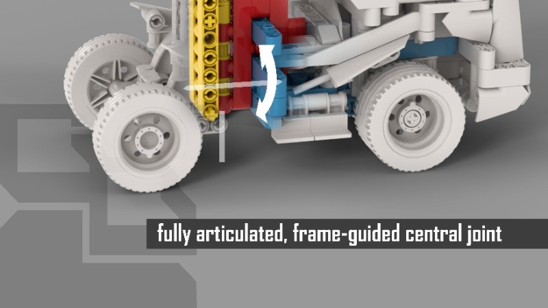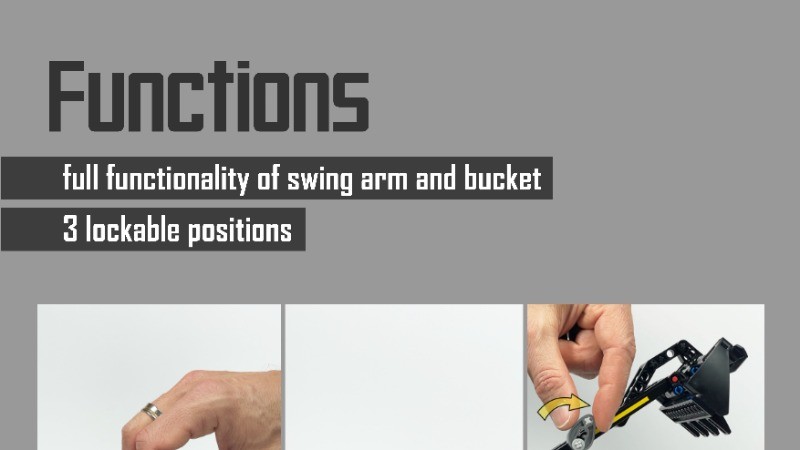 Functions: - full functionality of swing arm and bucket (with 3 lockable positions) - fully articulated, frame-guided central joint