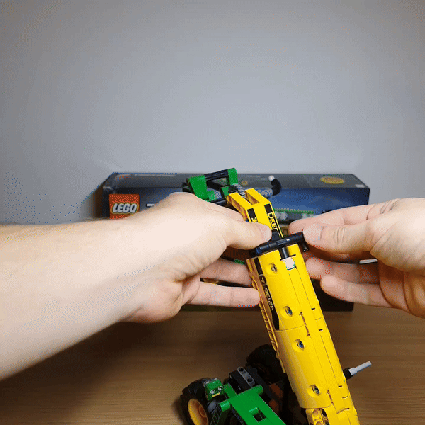 This alt was thicky to do, mostly because of the lack of pins (I made some crazy combinations to save some in the process 🤣😂), but I think I made the correct path to concept it, as I started from the most desired function for me (2 axle steering) and then all the rest of the functions that a telehandler normally have. but in the end the cabin was remaining to be build with only 2 pins :[ I even considered doing a "autonomus" telehandler as the cabin seemed impossible.. I was tired and my neurons were already fried 🤣, so I called it a day and went to sleep. The next day I revised all the model searching for pins and liftarms and well..