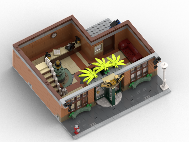 This is my second MOC, the Art Gallery, yet another alternate build of 10297-1, although this has been designed to a much higher quality than my first build (the Boutique Café).On the ground floor, a grand set of revolving doors leads into the spacious entrance hall, featuring a large fountain, 2 luxurious sofas, and a reception desk. Next, take the grand staircase up to the first floor, with paintings by famous Lego City artists lining the walls, a magnificent array of windows overlooking the street below, and balconies overlooking the lobby. After perusing the wide range of paintings, you can head up the stairs to the second floor, the sculpture gallery, an exhibition of the finest sculptures around, with a balcony out the back and a magnificent skylight on the roof, casting glorious sunlight through the building. Feel free to send a comment or DM me if there are any problems, I'll do my best to reply in 24 hours. Have fun building! :D P.S. sorry for the patchy roof - it was the best I could do with the plates I had left. If anyone thinks of any way I could improve it, I'd be grateful for suggestions :)