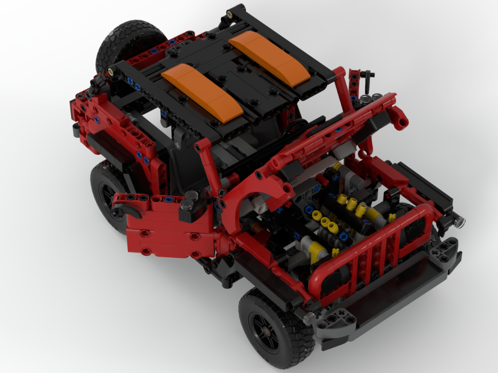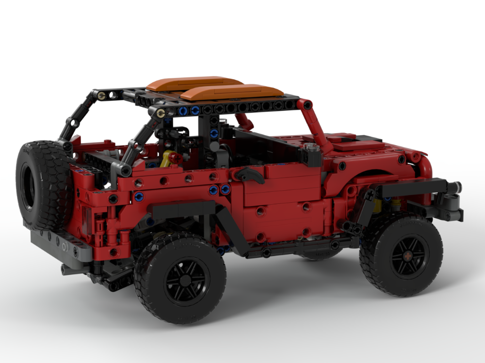 This alternate build of the LEGO Technic 42213 set transforms the Bronco into a rugged Jeep Wrangler packed with authentic details. The model captures the spirit of the iconic off-roader with opening doors and hood, giving access to a detailed interior and a working V6 engine under the bonnet.