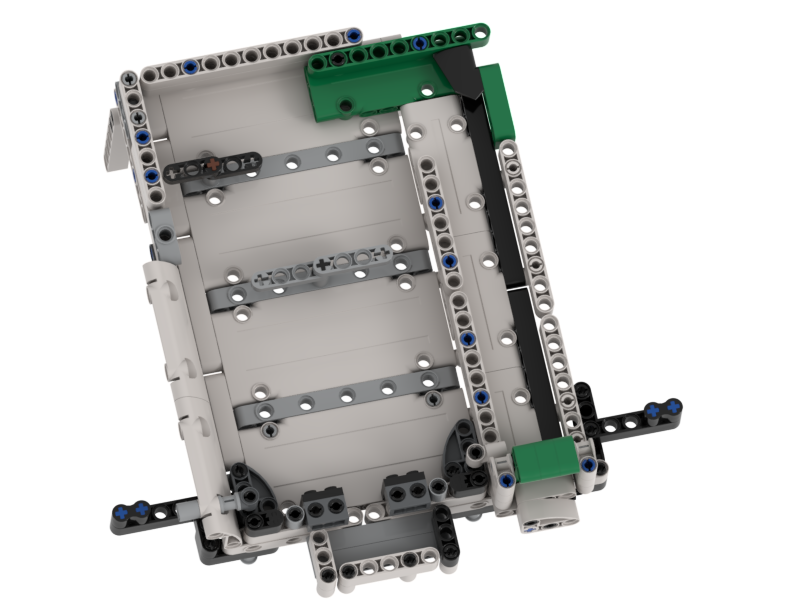 Fits GBC-standard balls, or any other similar-sized balls. Use the green liftarms to flick the ball into play, and then use the levers to keep the ball in play!! I have included two spinners, but you can easily add any of your own obstacles on the playing field.
