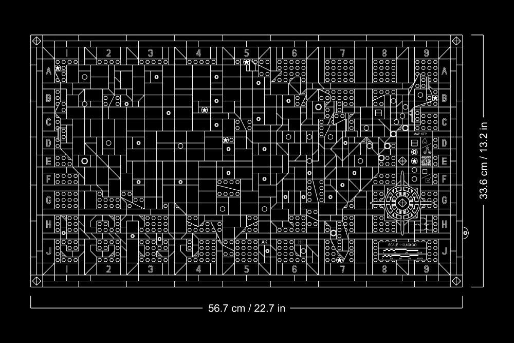 MAP DIMS: L x W x D 57.6 x 33.6 x 4.5 cm 22.7 x 13.2 x 1.8 in 72 x 42 x 5.6 studs
