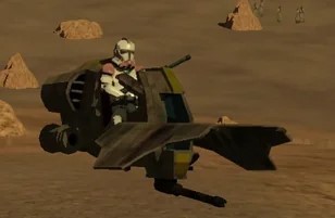 Designed for the elite warriors of Mandalore, this heavy-duty speeder bike prioritizes durability and raw engine output over the sleek aesthetics of Imperial or civilian models. Originally seen during the Galactic Civil War era in *Star Wars Galaxies*, this rugged craft was a favorite among bounty hunters and mercenaries who needed a reliable pursuit vehicle capable of traversing the harsh terrains of planets like Tatooine or Corellia.