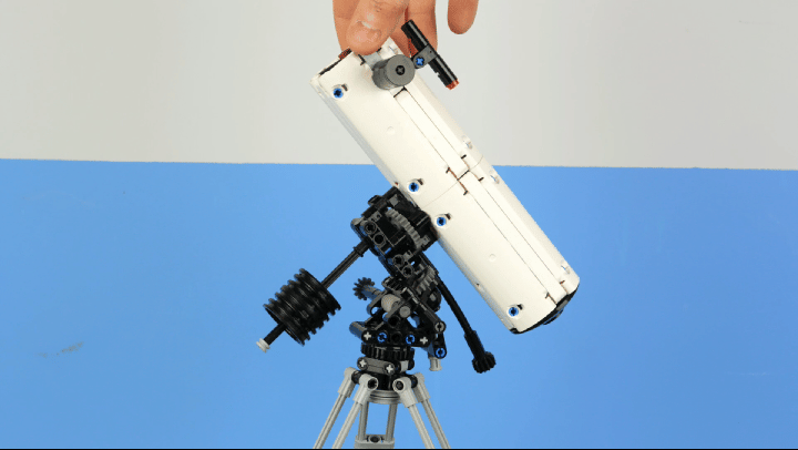 A Lego Technic Telescope, based on Newton tube with equatorial mount. It features a folding tripod with extendable legs, azimuth, altitude, right ascension and declination movements. Available in a complete package at Buildamoc.